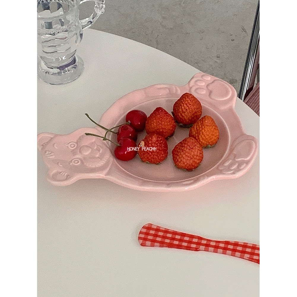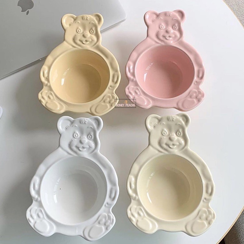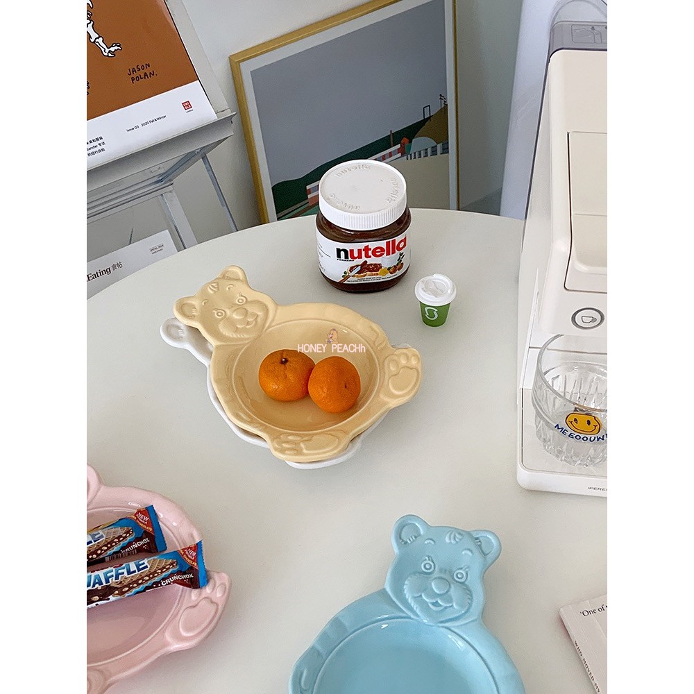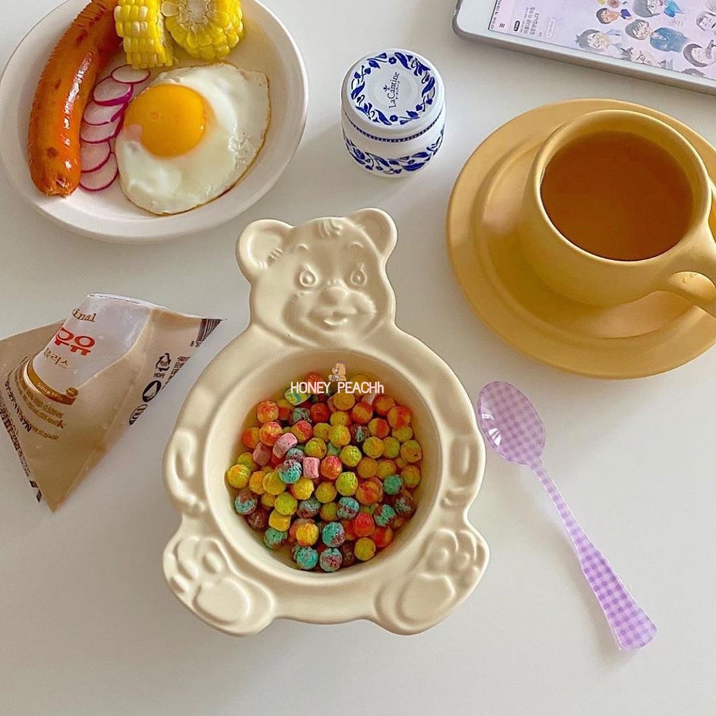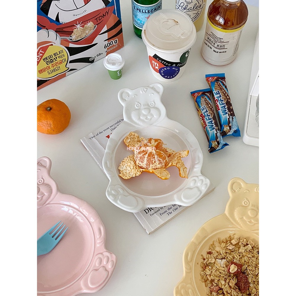ชามเซรามิกจานเซรามิกใหม่เกาหลี INS หมีการ์ตูนน่ารักจานอาหารเย็นชามอาหารเช้า / เด็กสัตว์ชามเล็กจานขนม