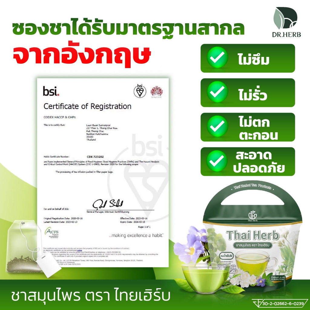 💚ชาสมุนไพรไทยเฮิร์บ สูตร 1 รสชาเขียวมะลิ Thai Herb (1 ห่อมี 10 ซองชา) สูตรแพทย์แผนไทย