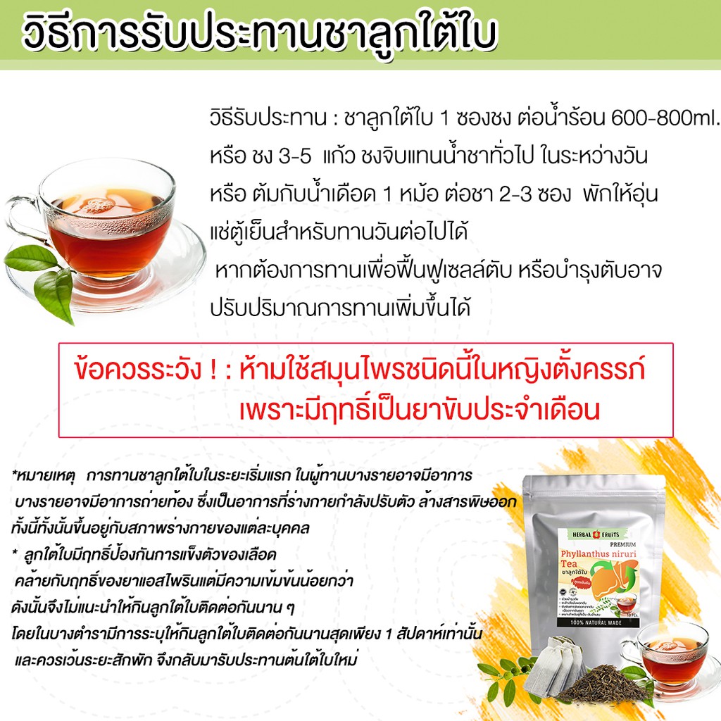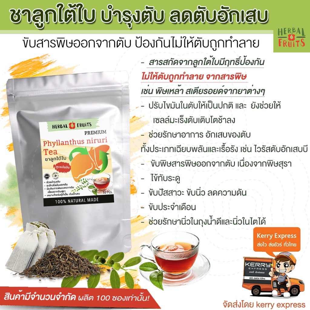 ชาลูกใต้ใบ สูตรเข้มข้น เกรด Premium ขับสารพิษจากดับ จำนวน 10 ซองชา แบรนด์ Herbal Fruits