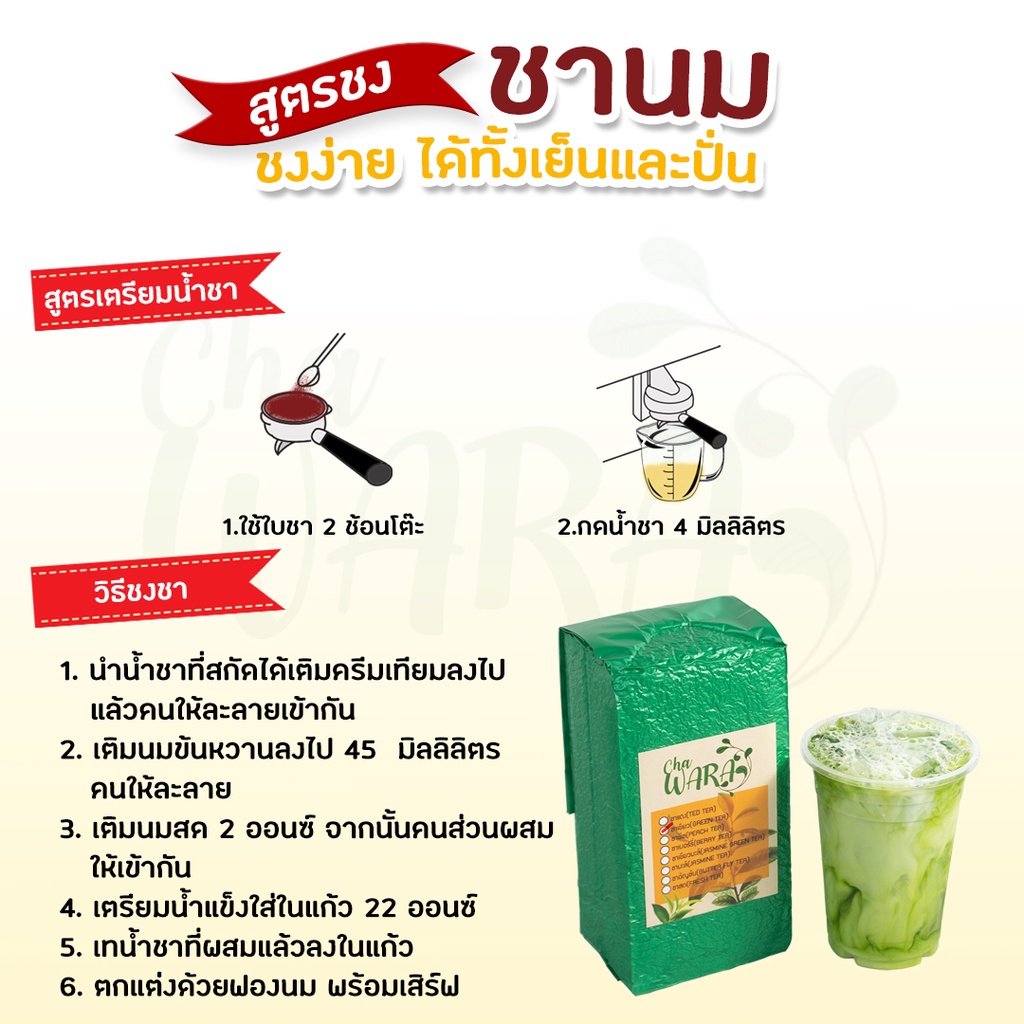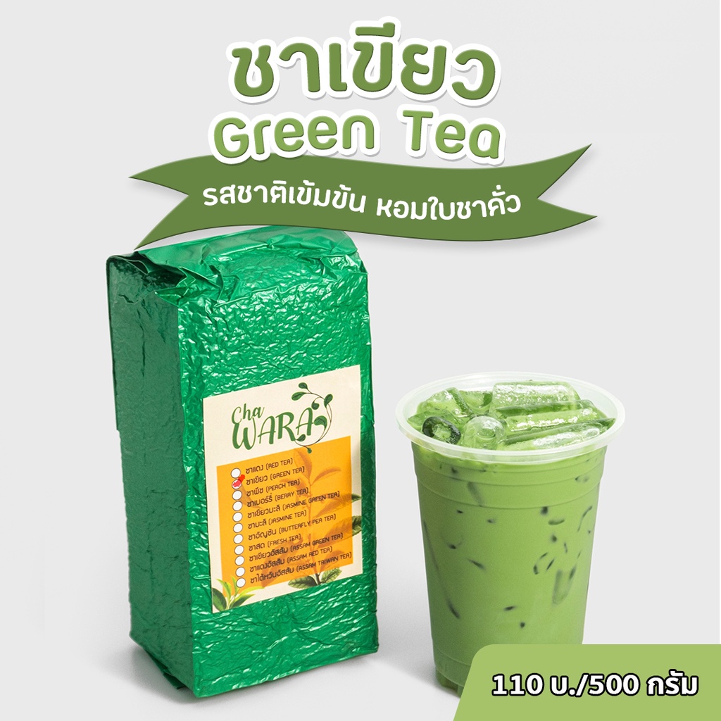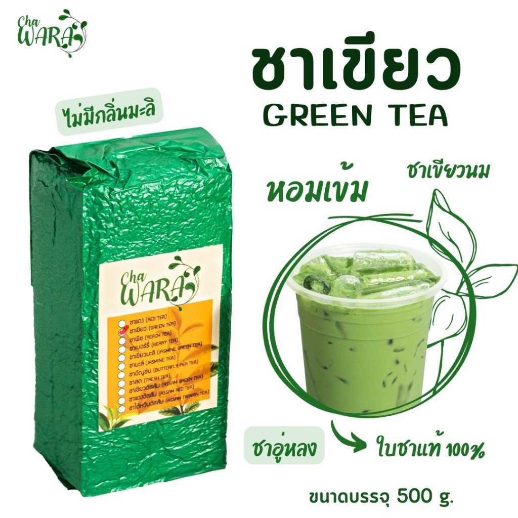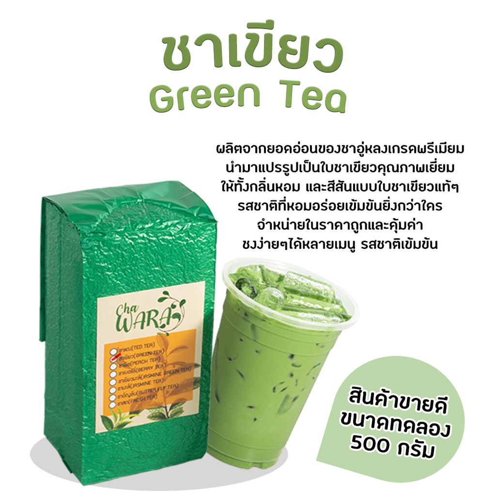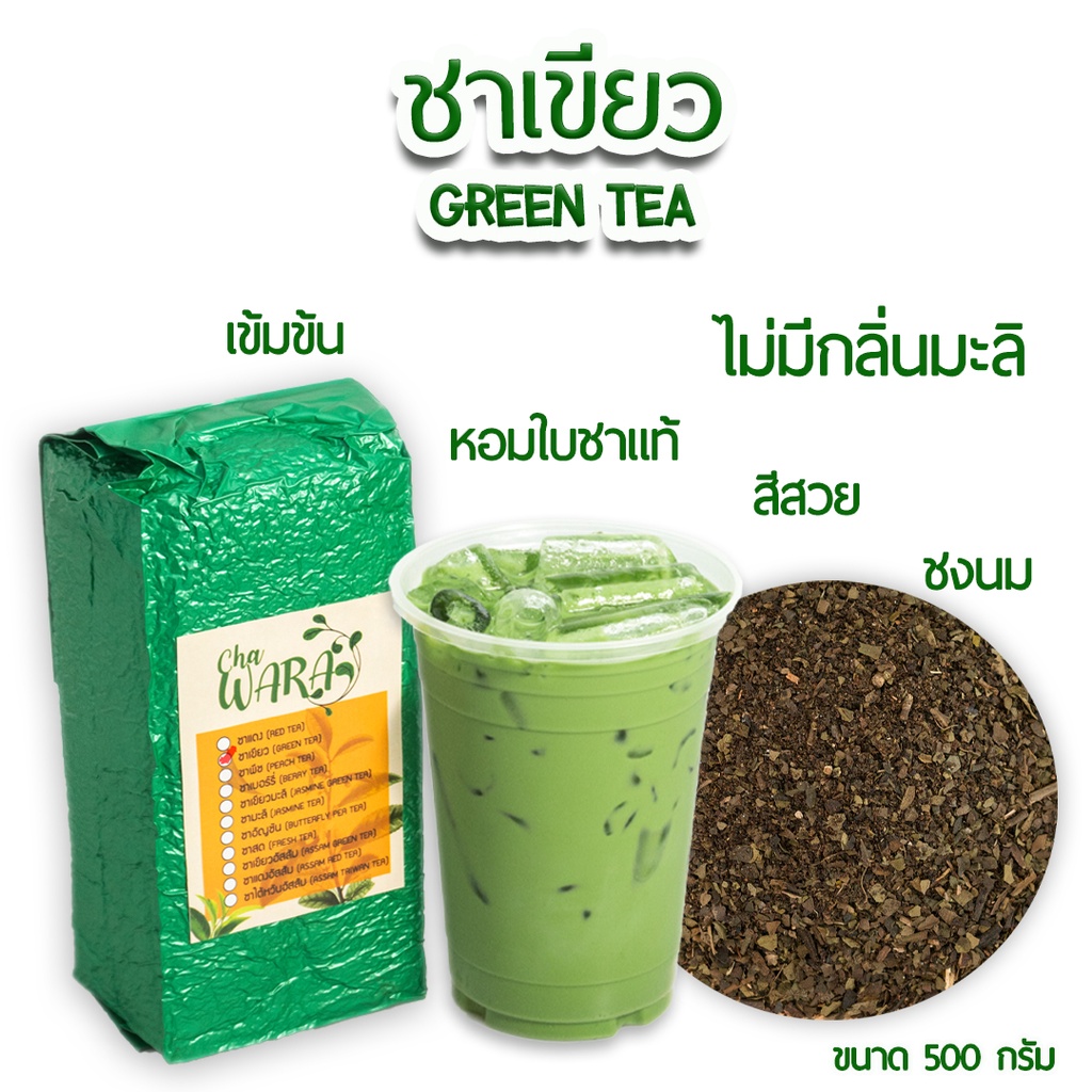 ชาเขียว green tea ไม่มีกลิ่นมะลิ ขนาด 500 กรัม ชานม เข้มข้น