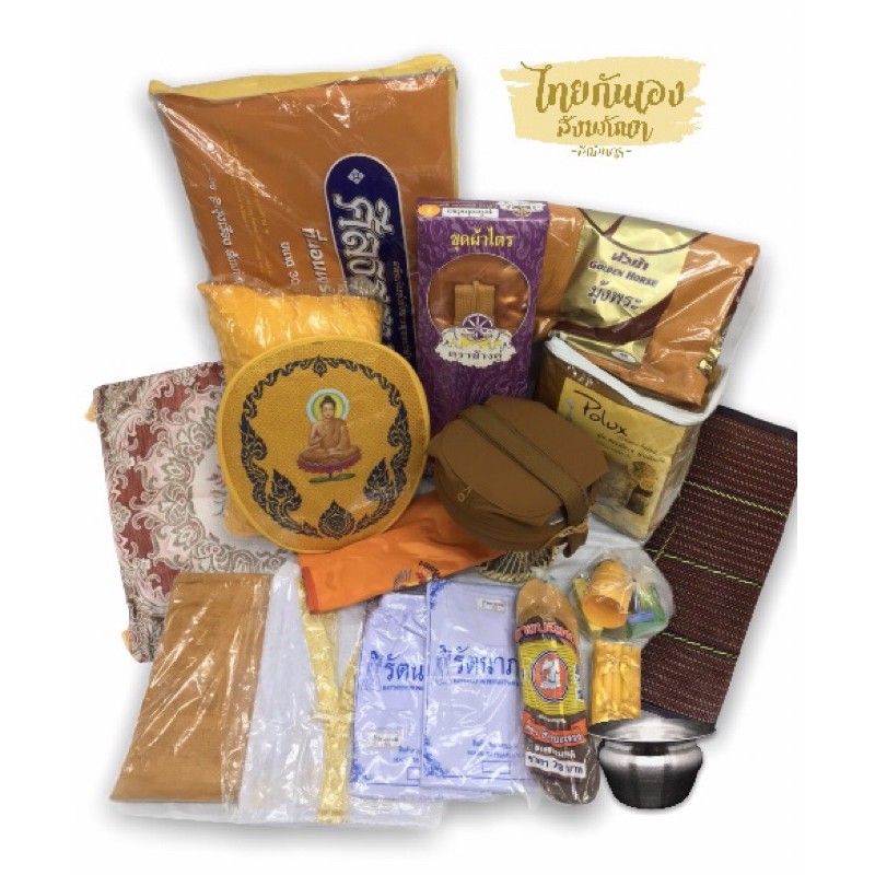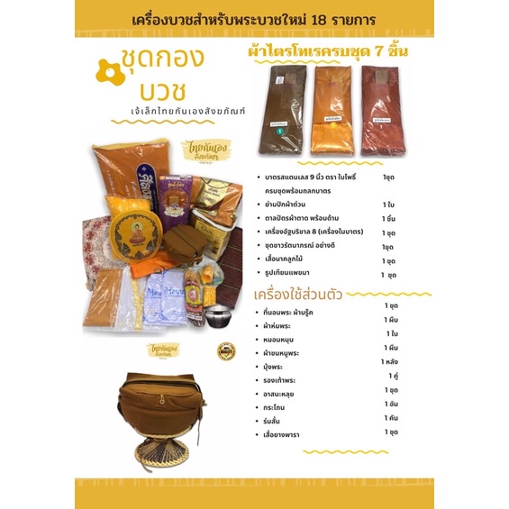 ชุดกองบวช ชุดเครื่องบวชนาคและเครื่องบวชสำหรับพระใหม่ 18 รายการพร้อมบวช บาตรสแตนเลสใบโพธิ์9นิ้ว ผ้าไตรป่านโทเรครบ7ชิ้น