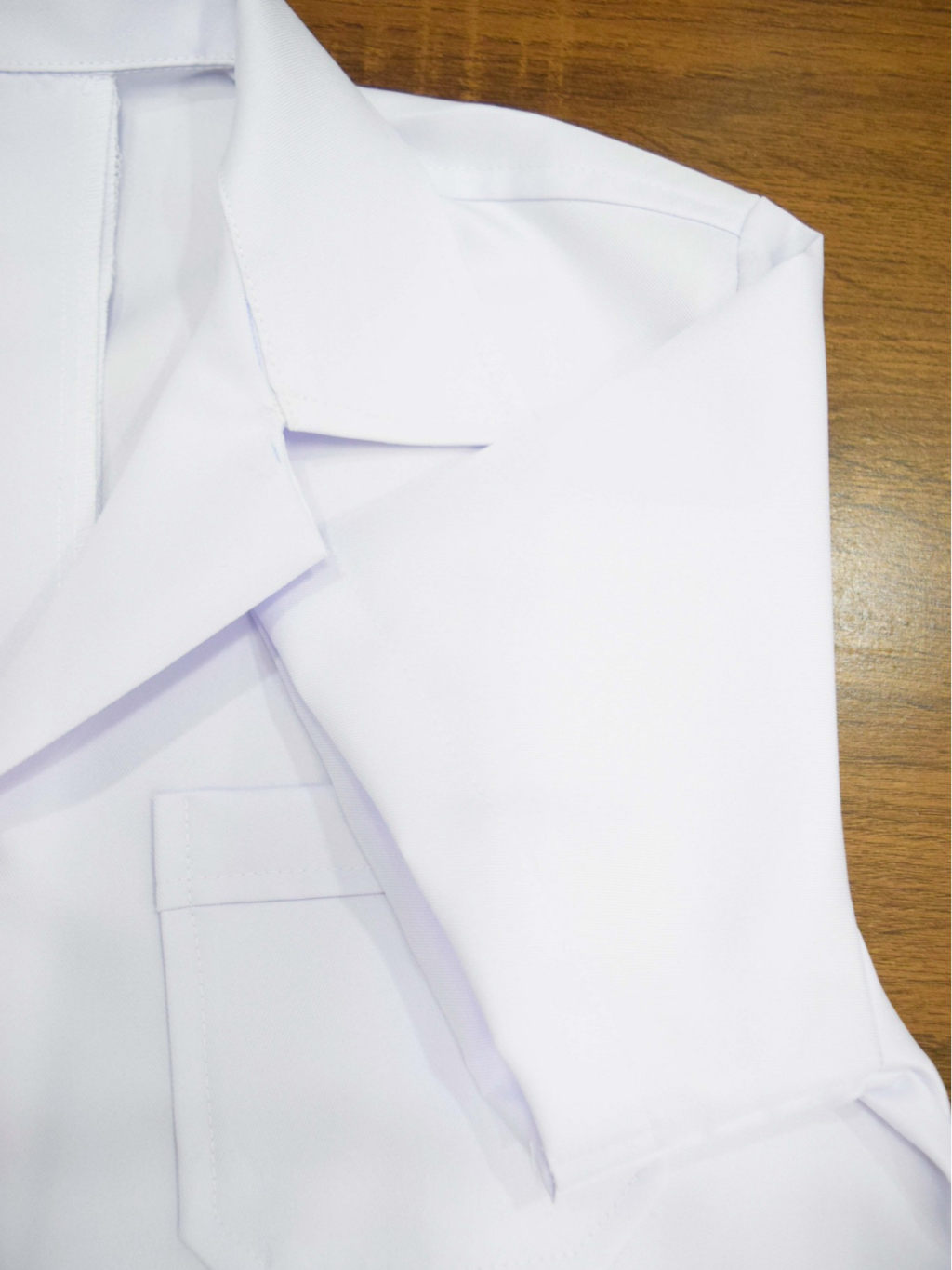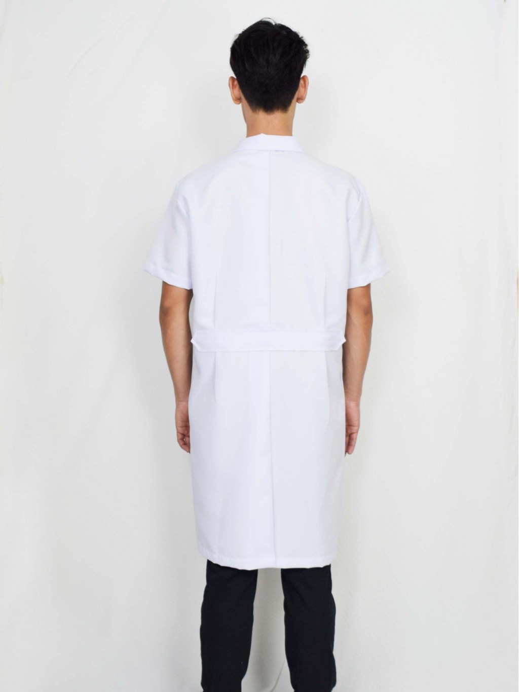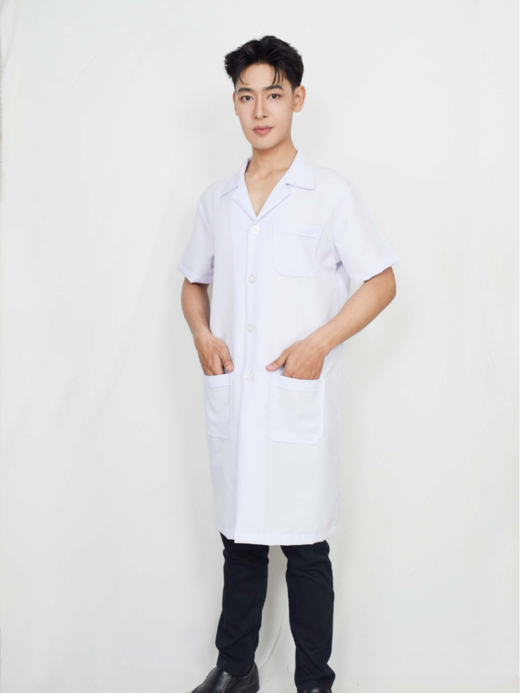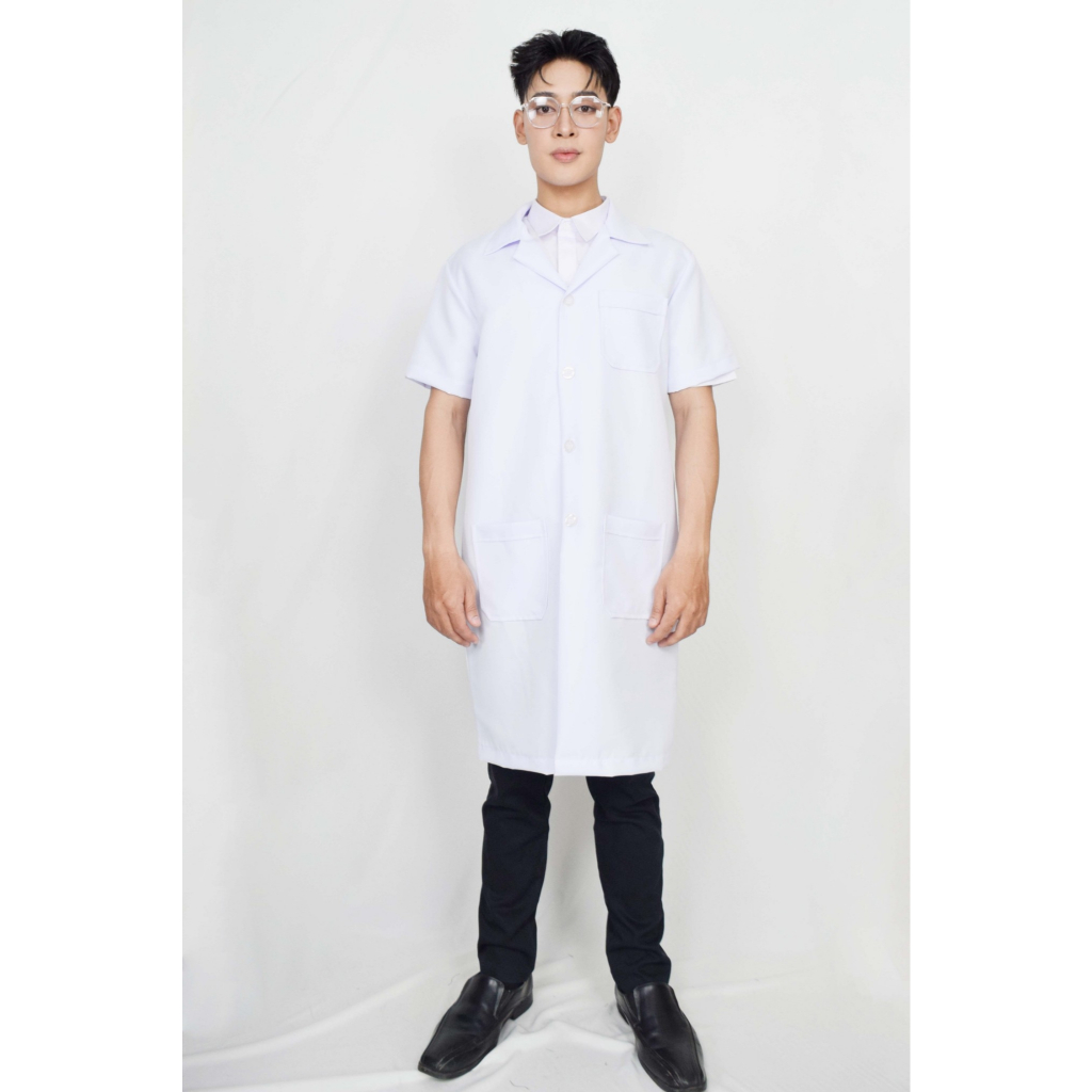 🚛🇹🇭 (คุณภาพสุง) ชุดกาวน์ เสื้อกาวน์ตัวยาว ปกฮาวาย แขนสั้น ชุดการทางการแพทย์แขนสั้น มีกระเป๋าใหญ่