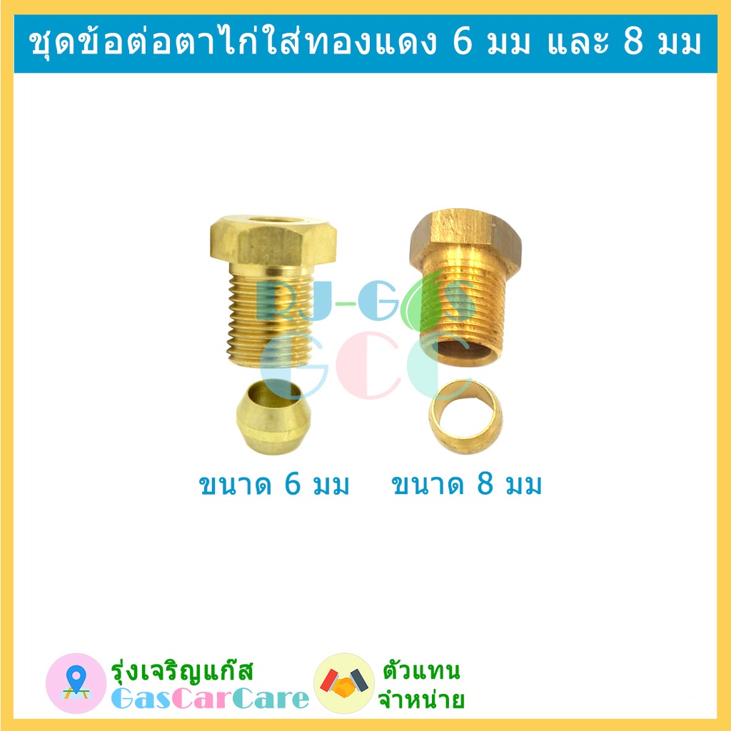 ชุดข้อต่อตาไก่ ใส่ท่อทองแดง 6 มม และ 8 มม งานระบบแก็สรถยนต์ LPG