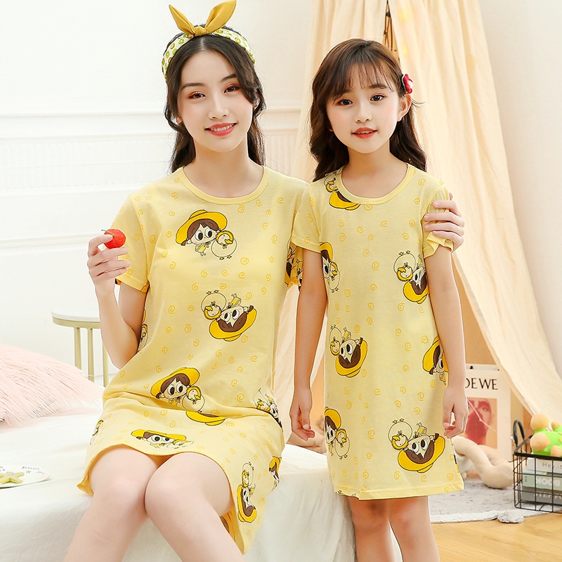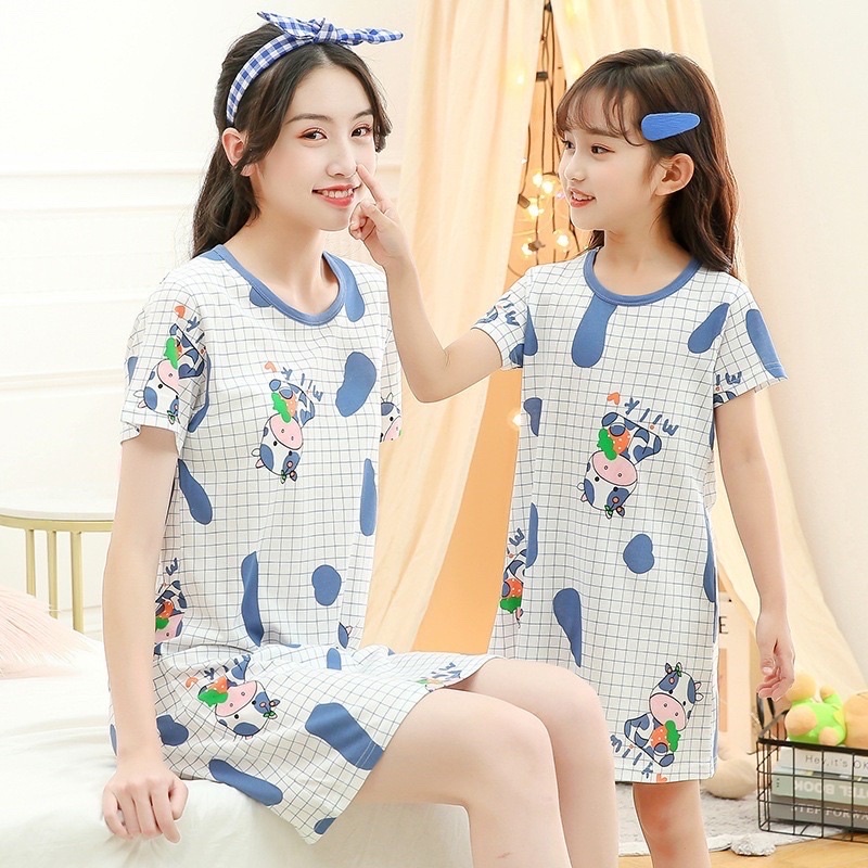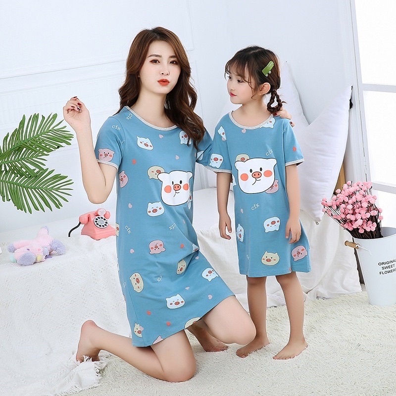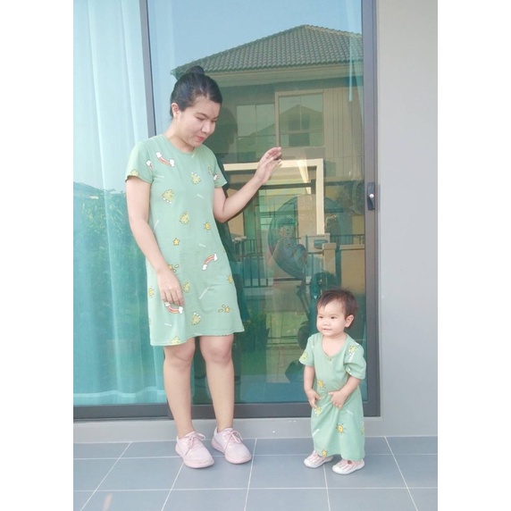 ชุดคู่แม่ลูก ซื้อ 1 ได้ 2 เซตชุดเดรสคู่แม่ลูก 1เซต=2ชิ้น ผู้ใหญ่ 1 ชิ้นและเด็ก 1 ชิ้น ผ้านิ่มใส่สบาย ยืดได้ ลายน่ารัก