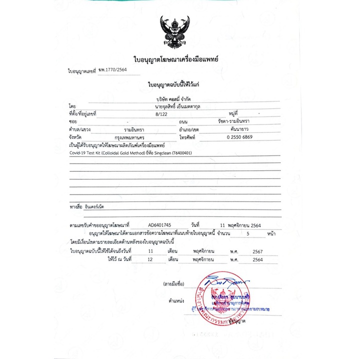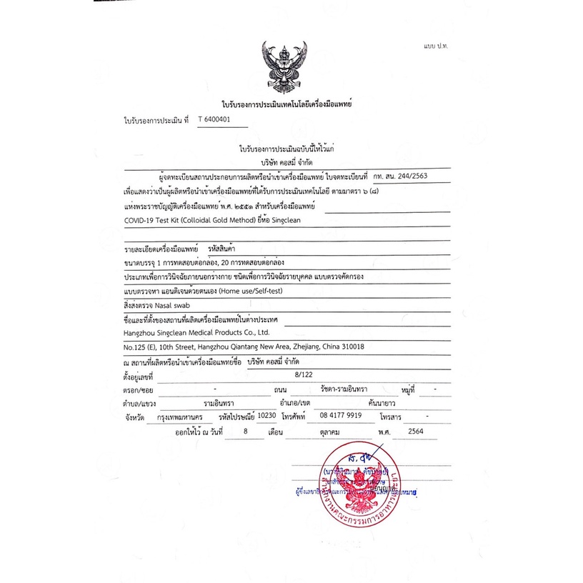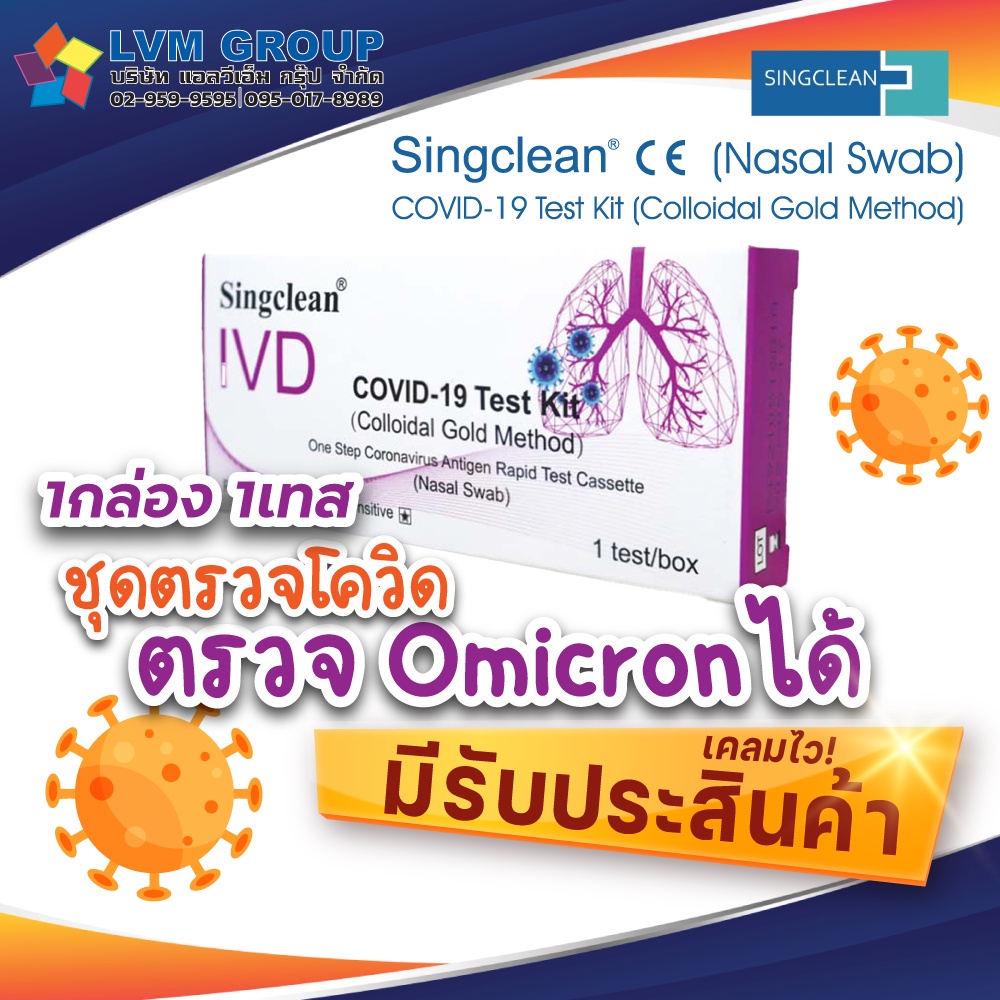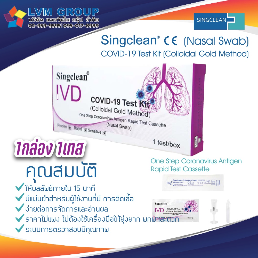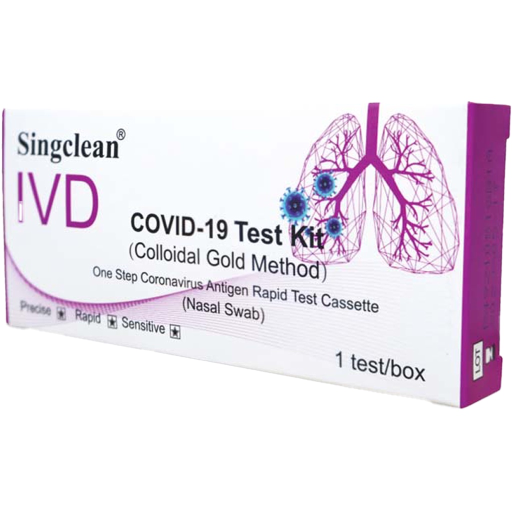 ชุดตรวจโควิด ATK 1กล่อง1เทส Singclean CE (ก้านยาว) ชุดตรวจ COVID-19 Test Kit (Colloidal Gold Method)ก้านยาว