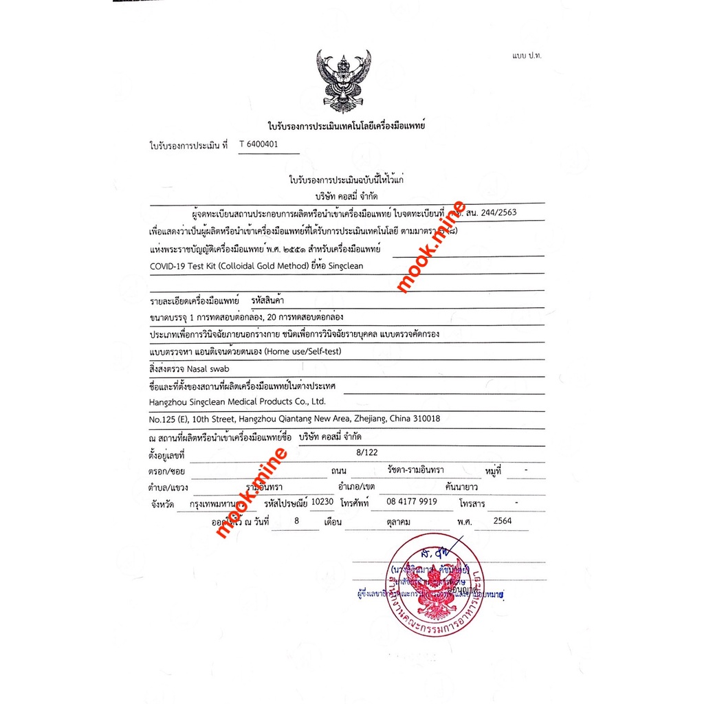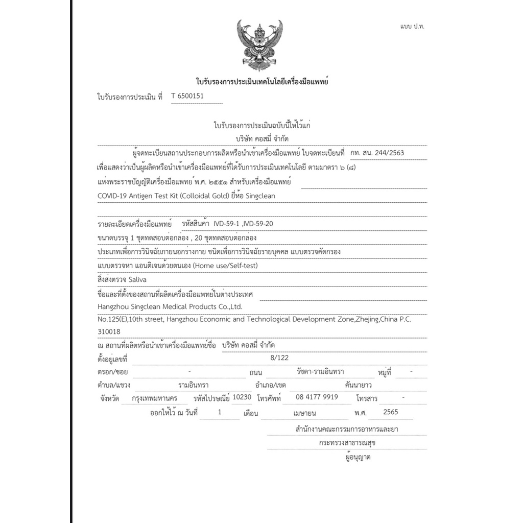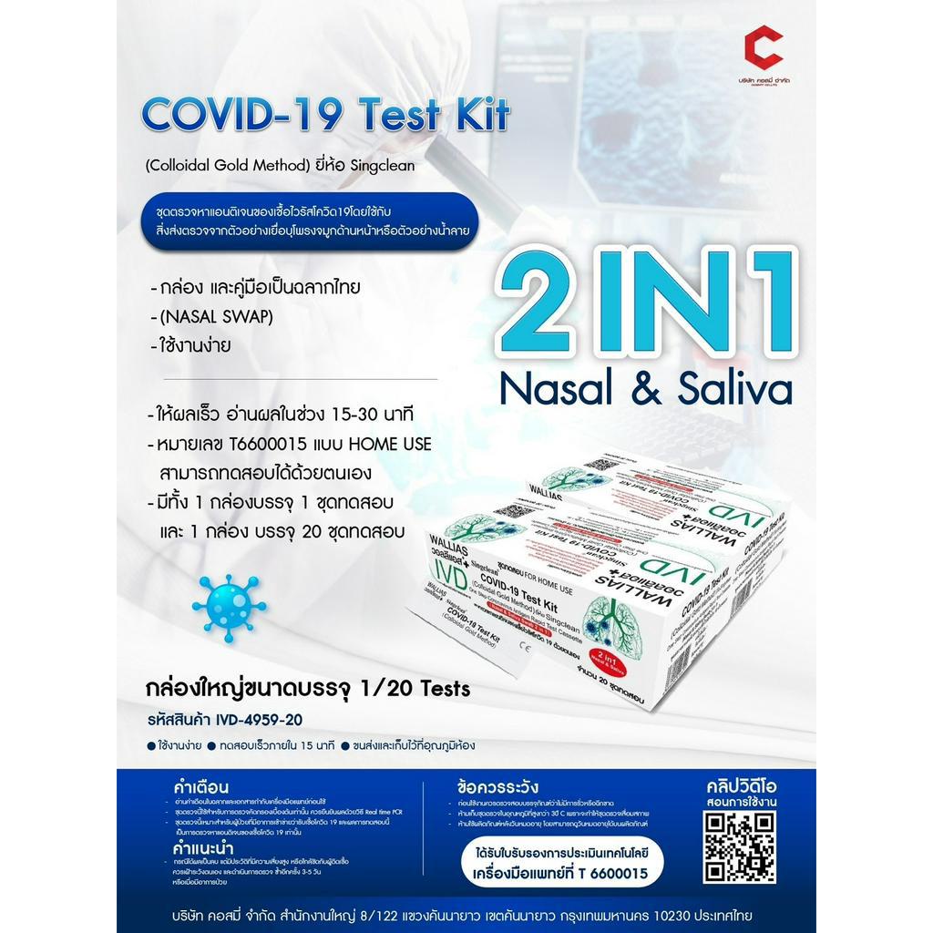 ชุดตรวจatk ยี่ห้อsingclean แบบน้ำลาย(ตรวจจมูกได้)บรรจุ20testกล่องรวม ตรวจOmicron ได้ มีอย. ออกใบกำกับภาษีได้