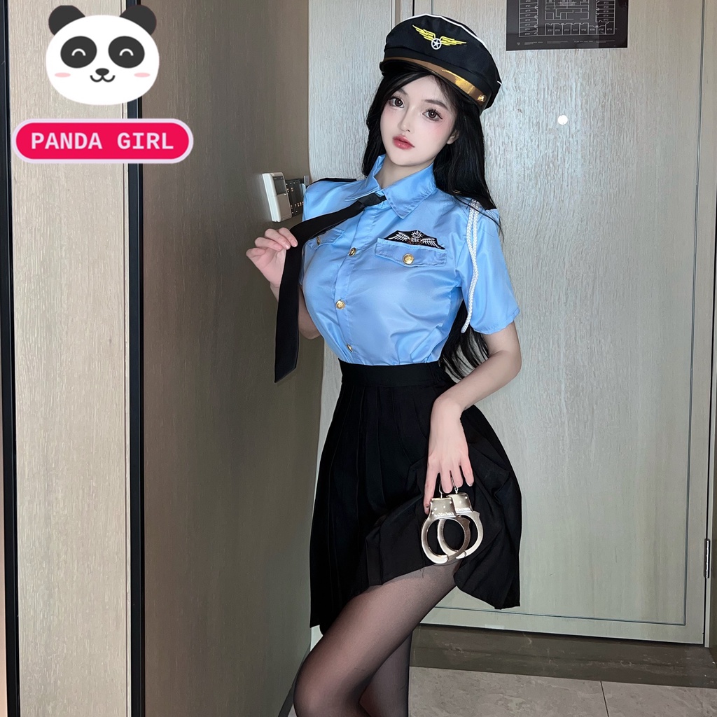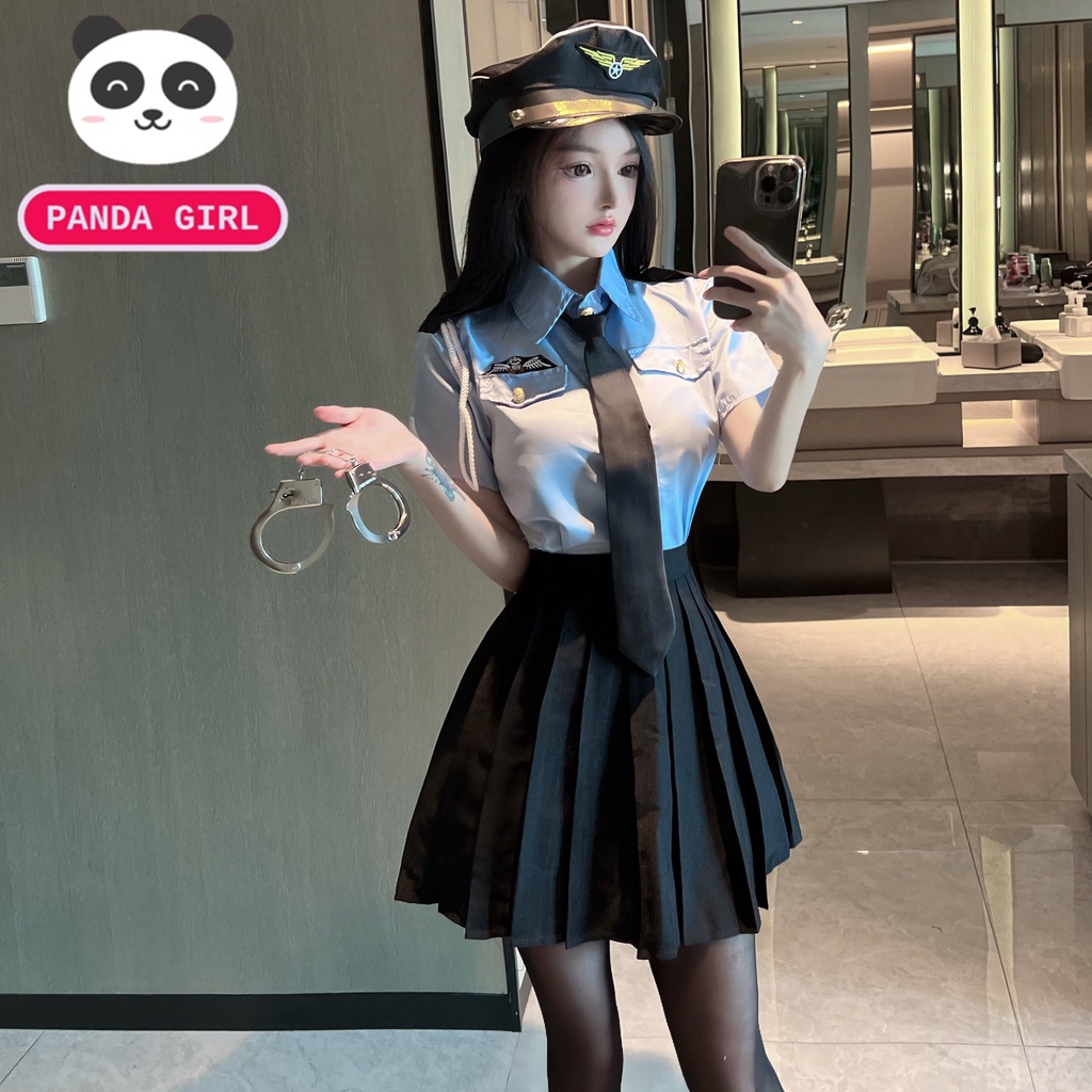 ชุดตำรวจ ชุดนอน 🌟เกรดดี 💫 มีไซต์ให้เลือก S-XL 85kg กระโปรงสะโพก สวมบทบาท ชุดนอน พร้อมเนคไท P-396