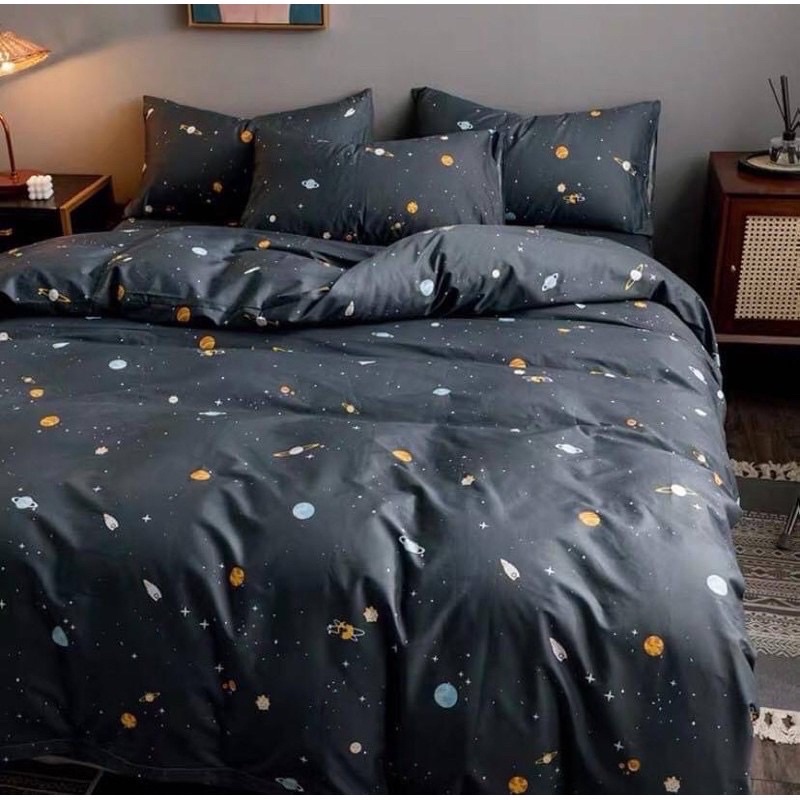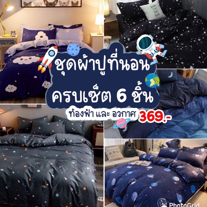 ชุดผ้าปูที่นอน ผ้าปูที่นอนลายอวกาศ ผ้านวม ชุดเครื่องนอน ครบชุด6ชิ้น มีขนาด 3.5ฟุต/5ฟต/6ฟุต {มีเก็บเงินปลายทาง}