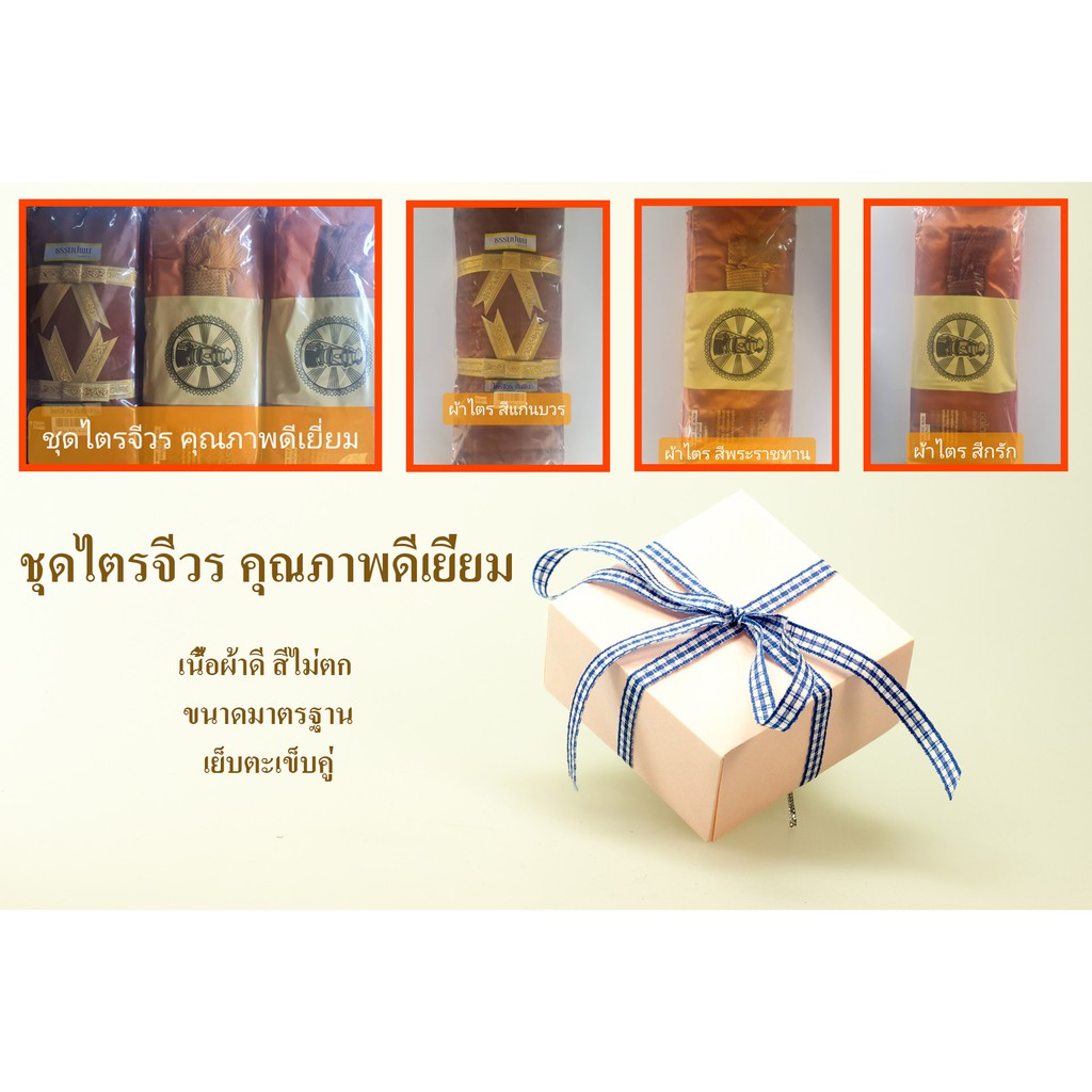 ชุดผ้าไตร ไตรเต็ม ไตรครอง ไตรจีวร (7ชิ้น) 2 x 3 เมตร
