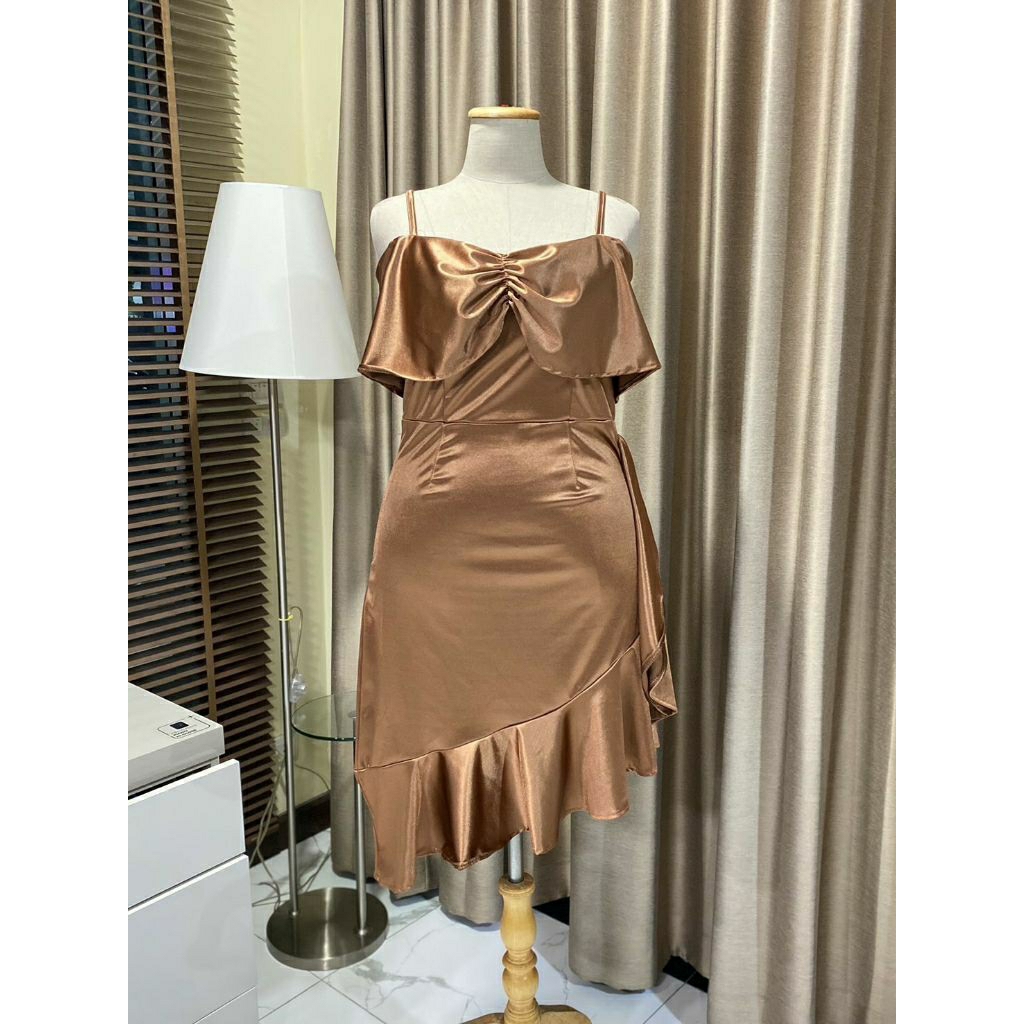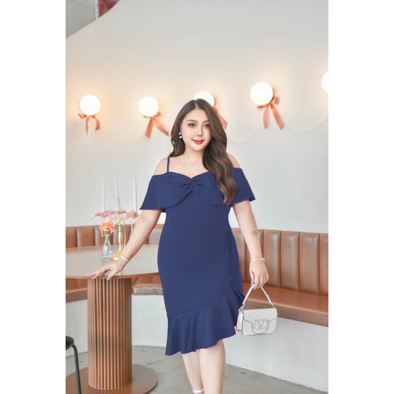 เดรสสั้น สายเดี่ยวอกจีบ BigSize ชุดออกงาน ชุดราตรีสั้น สาวอวบ Big size ชุดเดรสวันวาเลนไทน์ ชุดทำงาน คนอ้วน ผ้าซาตินยืด