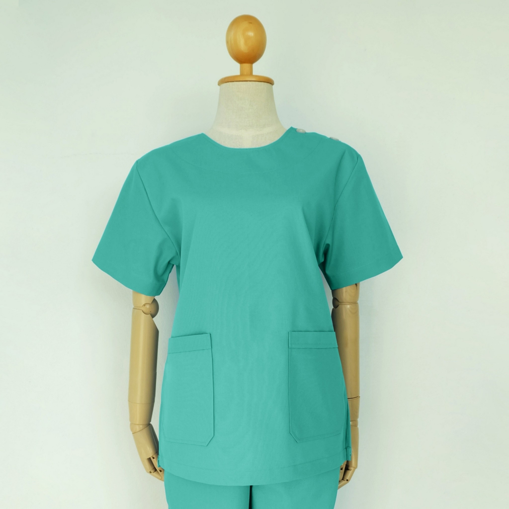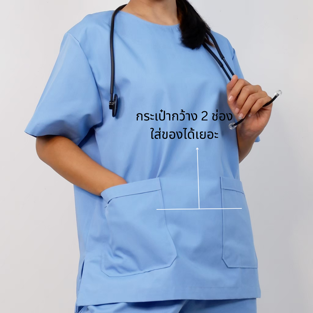 🚛🇹🇭 ชุดสครับ [เซตเสื้อ+กางเกง] ชุดทางการแพทย์ เสื้อสครับคอกลม มีกระเป๋าหน้า 2 ใบ ใส่สบาย พร้อมส่ง