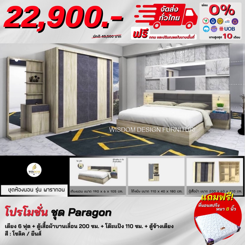 ชุดห้องนอน รุ่น Paragon เตียง ตู้บานเลื่อน โต๊ะแป้ง ตู้ข้างเตียง **ตจว.มีค่าจัดส่ง สอบถามก่อนสั่งสินค้า**