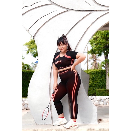 🔥ลด 70.-.ใส่โค้ด INC1SLF🔥ชุดออกกำลังกายเสื้อครอป เเขนสั้น+ กางเกงขายาว ฟรีไซส์