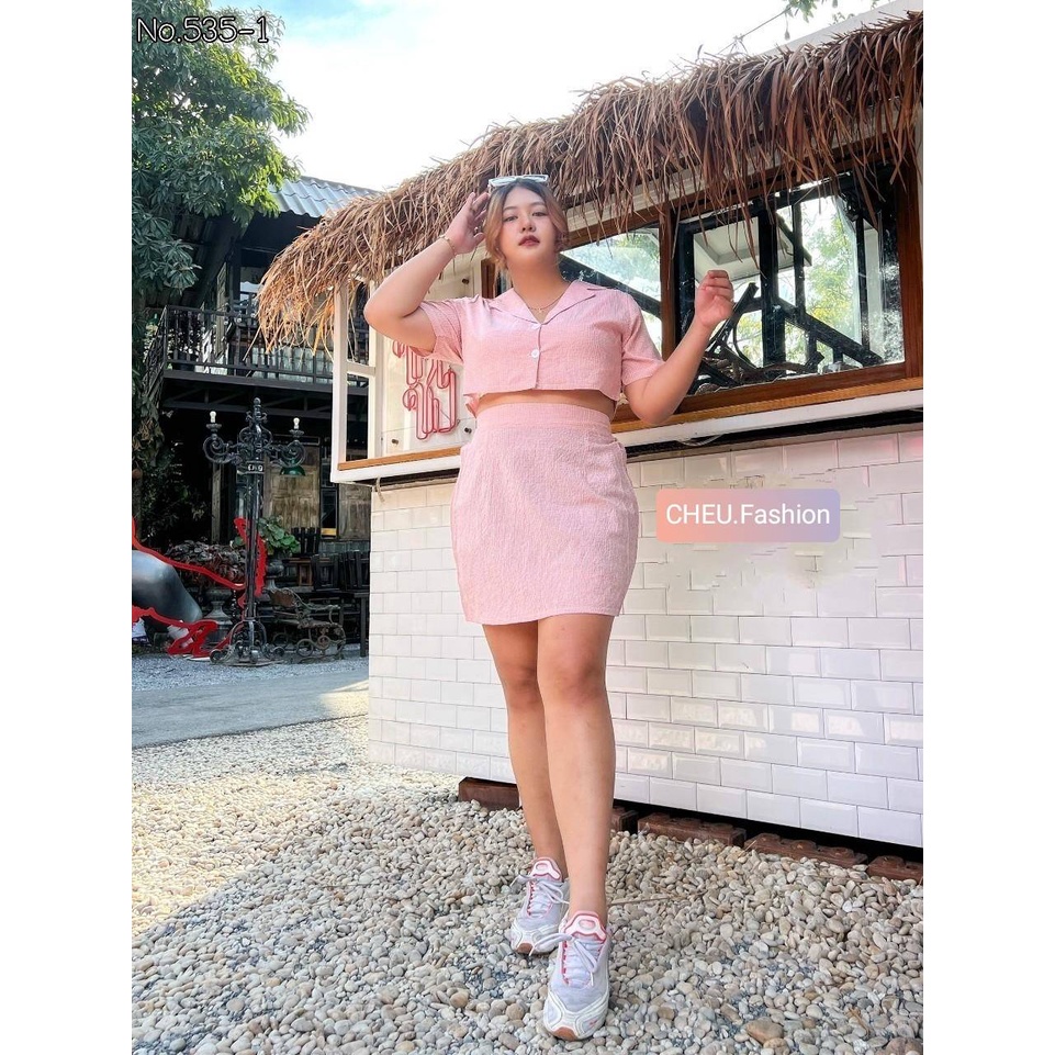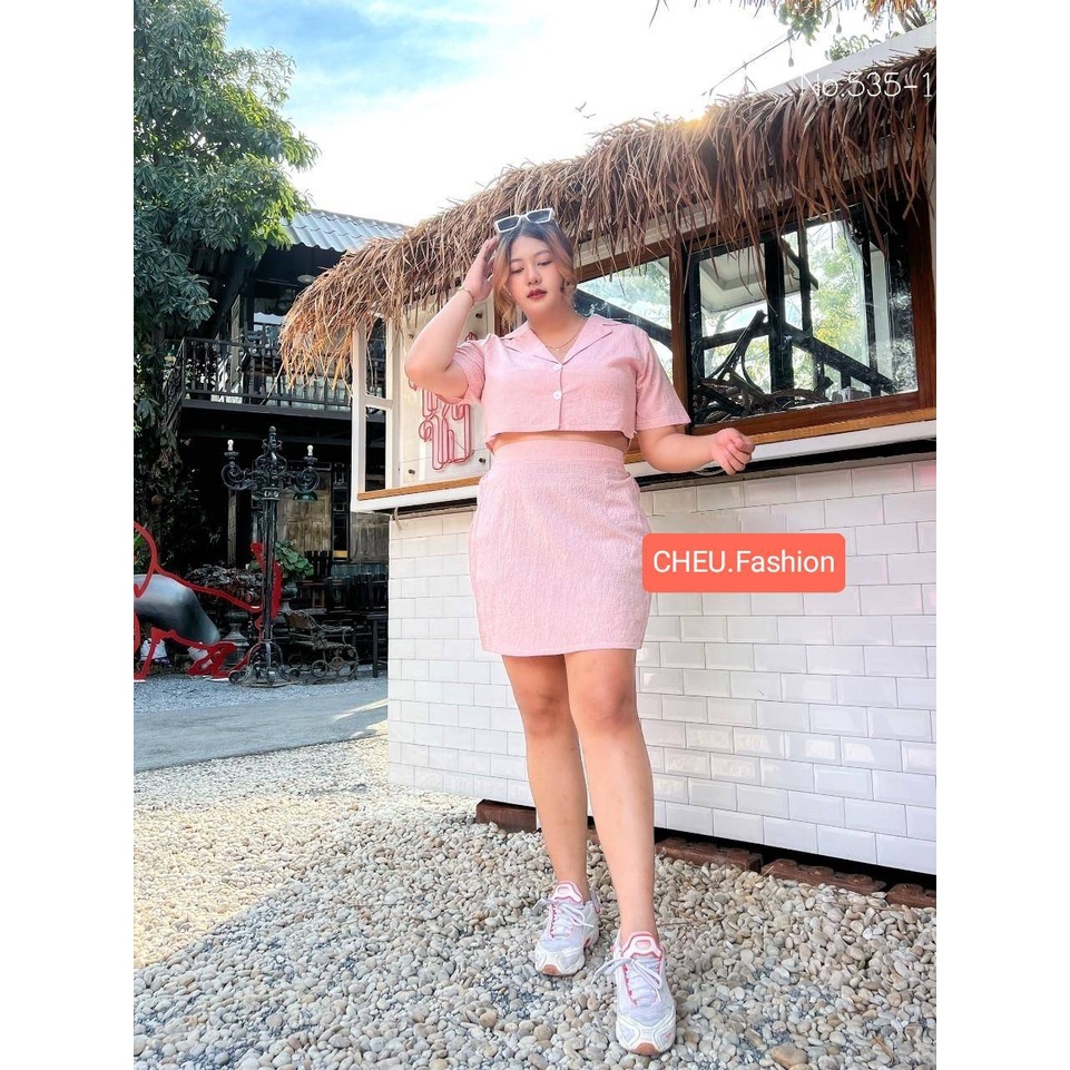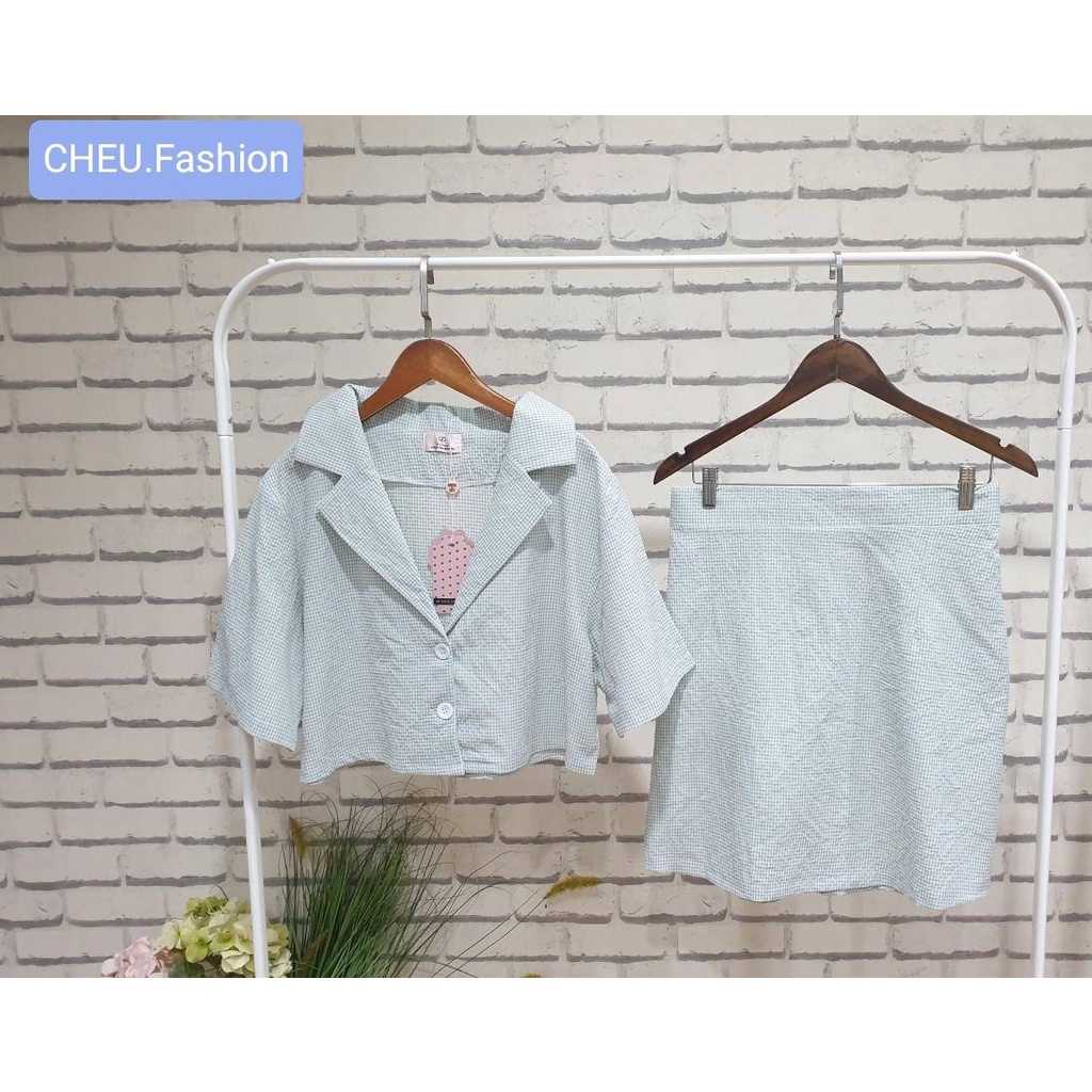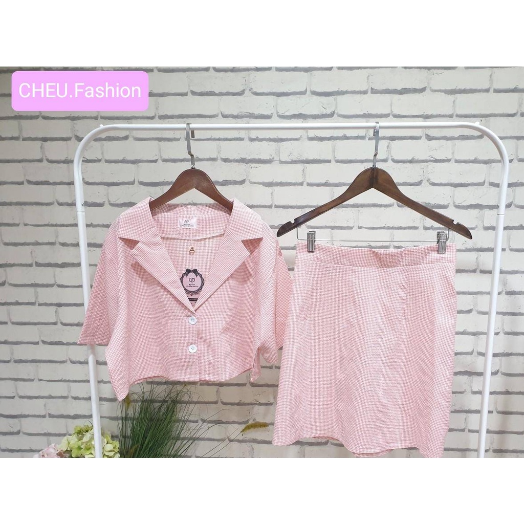 ลดล้างสต็อก!! ชุดเซทสาวอวบลายสก๊อต เสื้อเชิ๊ต+กางเกง งานป้าย