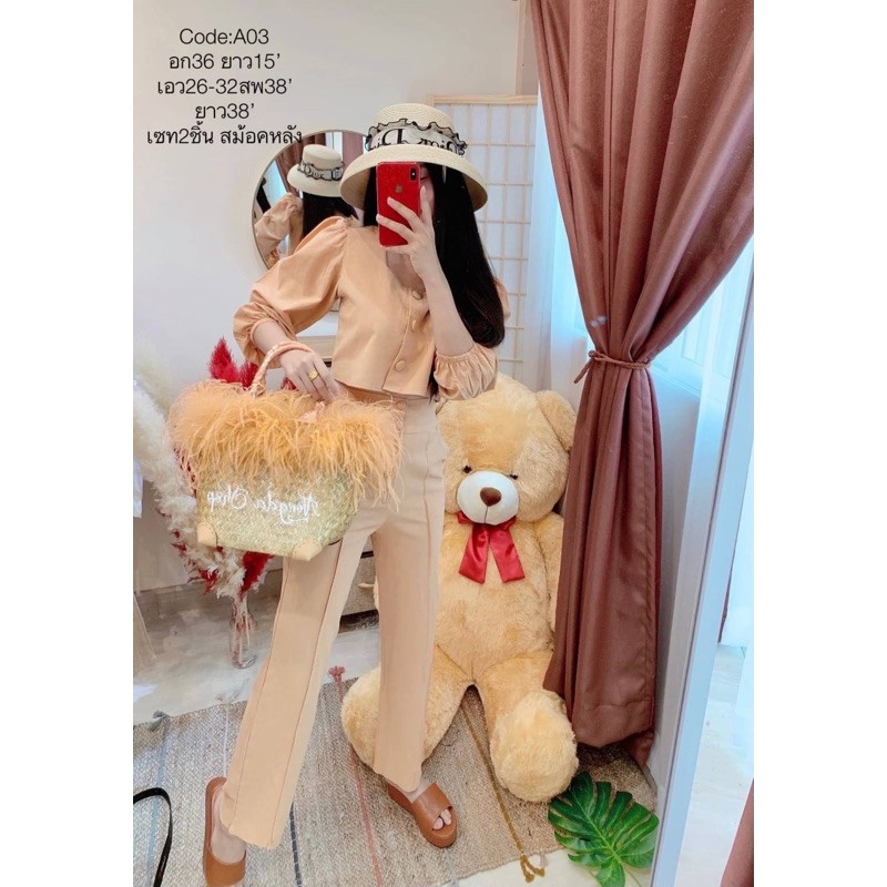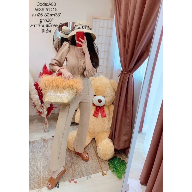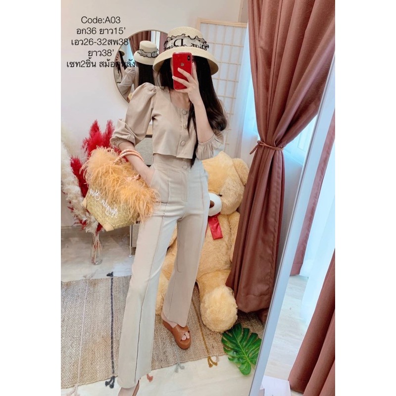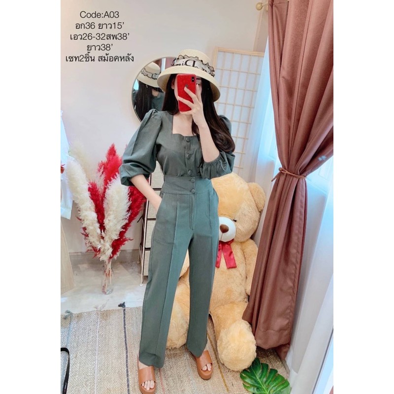 ชุดเซ็ทเสื้อ+กางเกงขายาว ลายเรียบหรูดูแพง