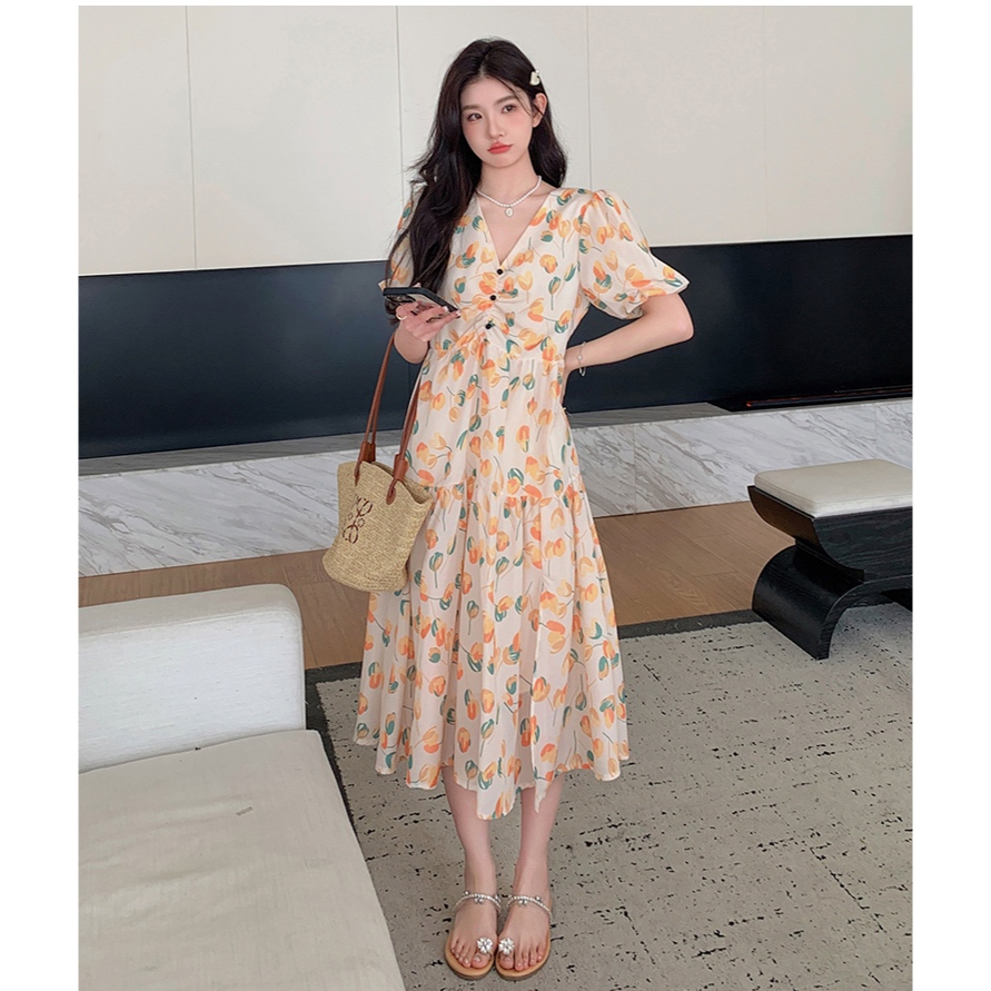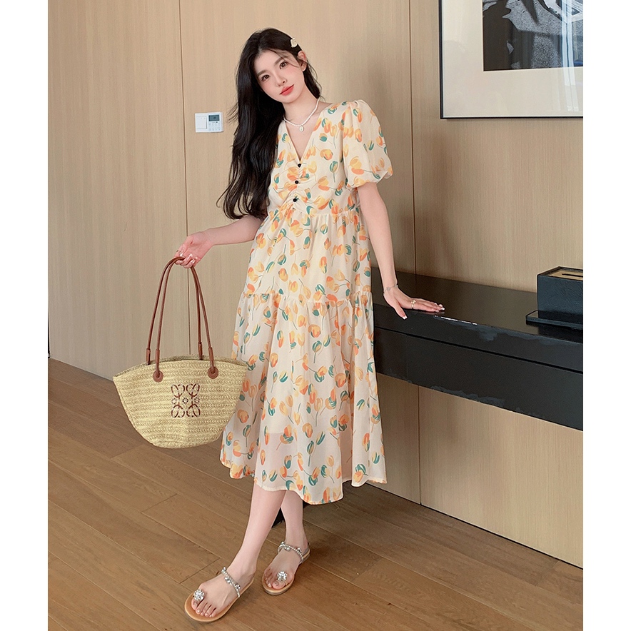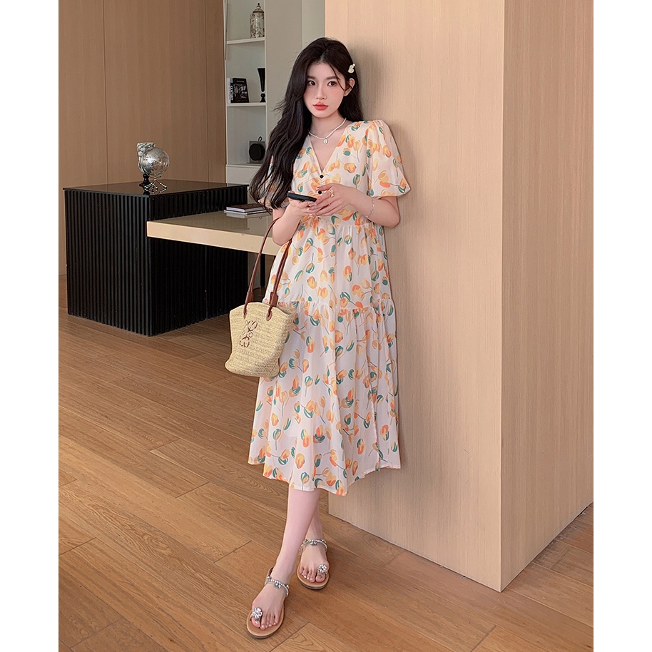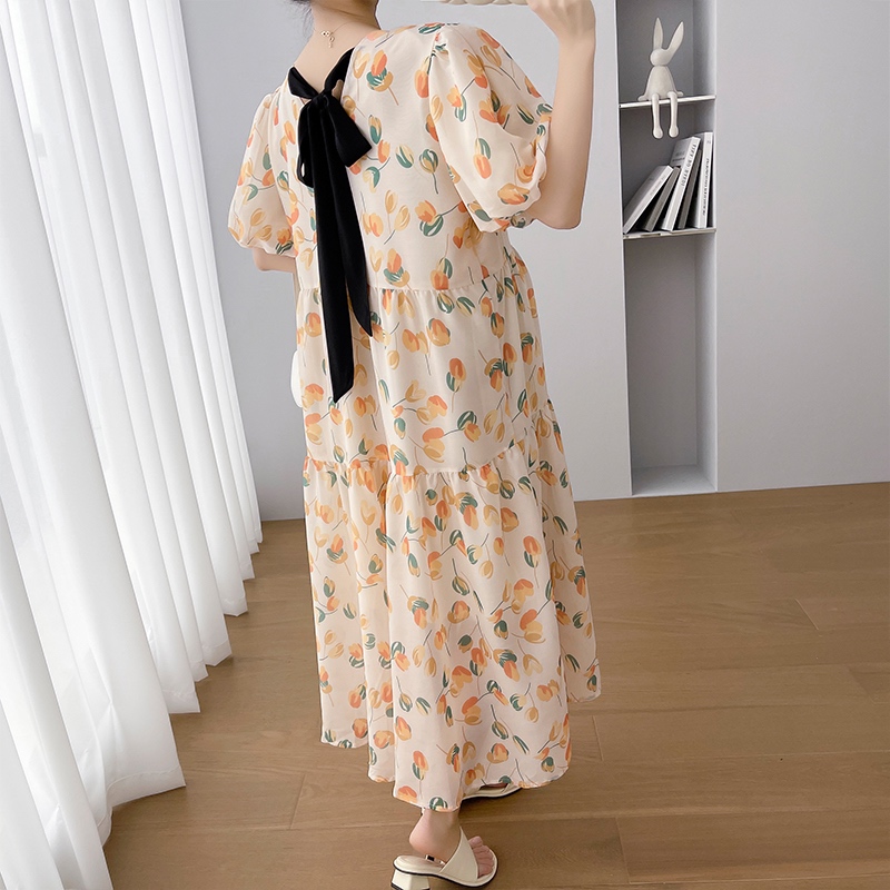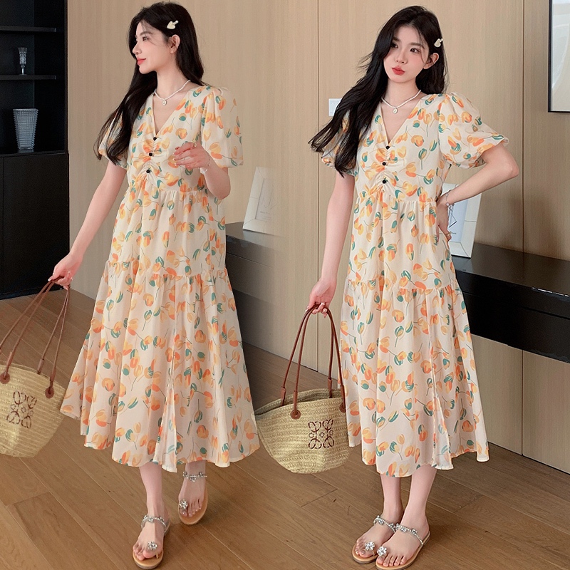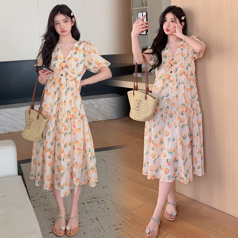 ชุดเดรสคลุมท้องแฟชั่น ผ้าชีฟองเกาหลี AA4053