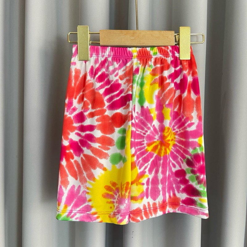 ชุดเด็ก ลายมัดย้อม ลายสงกรานต์ แขนสั้นขาสั้น ผ้าไมโคร นิ่มบางเบาใส่สบายสีสดซักง่ายสีไม่ตก(ส+ส) มัดย้อมชมพู สีแฉก