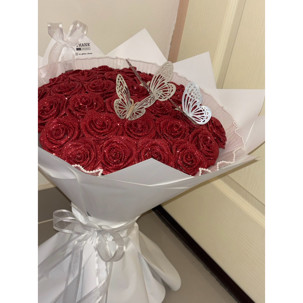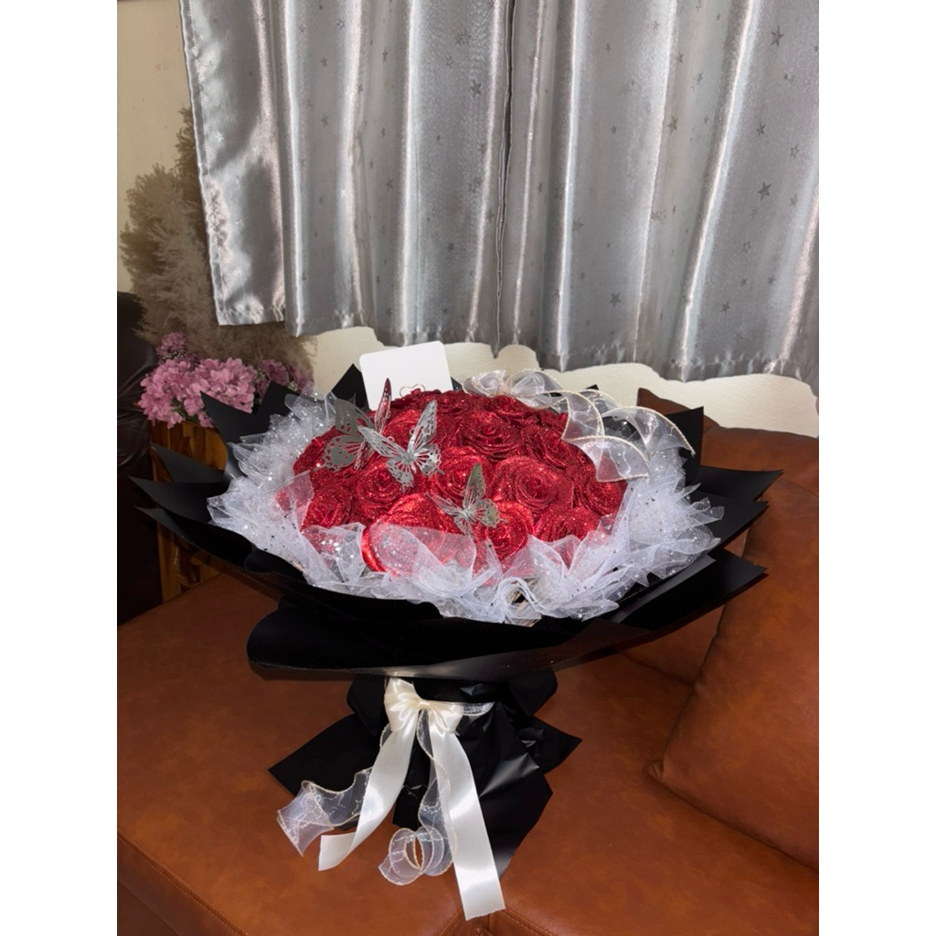 ช่อกุหลาบกลิตเตอร์ กุหลาบริบบิ้น ช่อ 30 ดอก ฟรีตกแต่ง