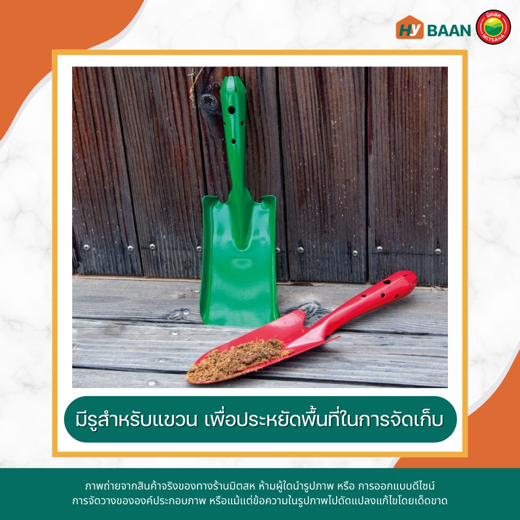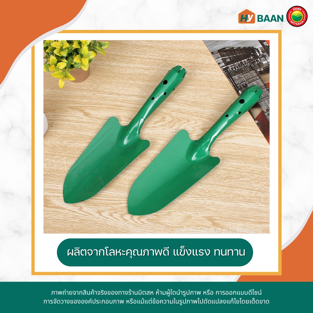 ช้อนพรวนดิน Planting spoon เขียว,เหลือง (คละสี) ปลายแหลม7x27cm, ปลายตัด8x26cm พลั่ว ช้อน เสียม พรวน ตัก ดิน มิตสห Hybaan