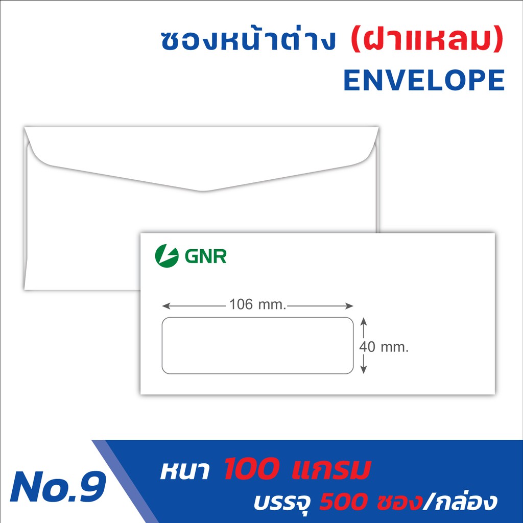 ซองจดหมาย เบอร์ 9 (ฝาแหลม) แบบมีหน้าต่าง ( ขนาดหน้าต่าง 40mmX106mm )