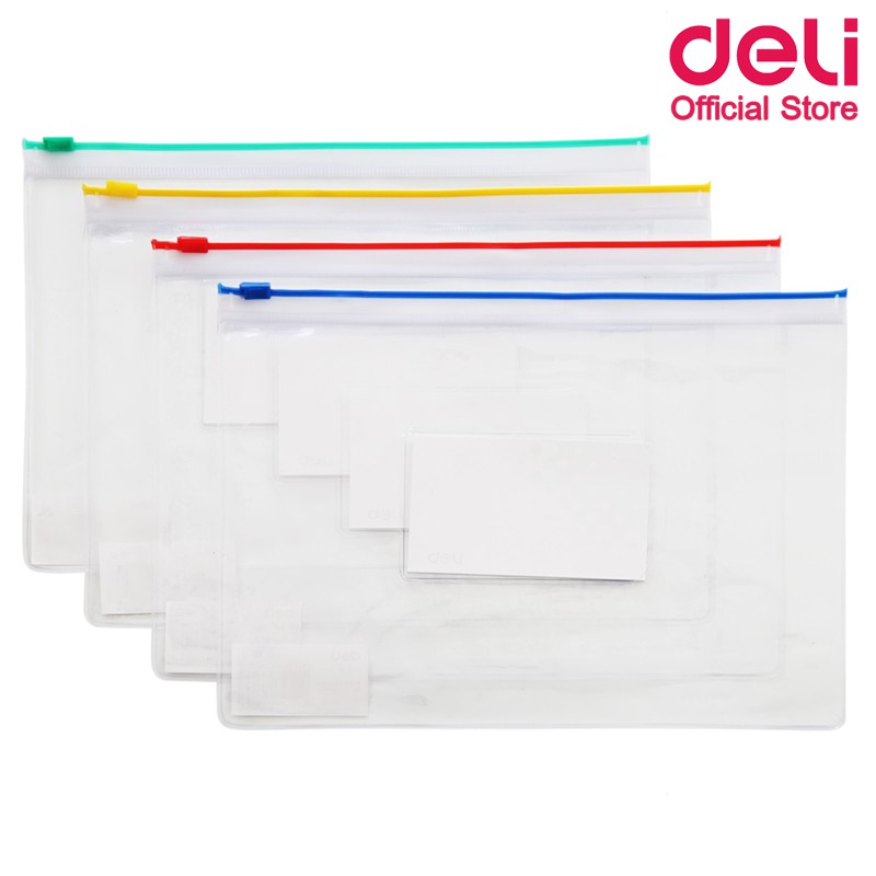 ซองซิปใสกันน้ำ Deli ซองพลาสติก PVC ขนาด A4 (คละสี 1 ชิ้น) ซองใส่ ซองใส แฟ้มเอกสาร แฟ้มใส อุปกรณ์การเรียน สำนักงาน
