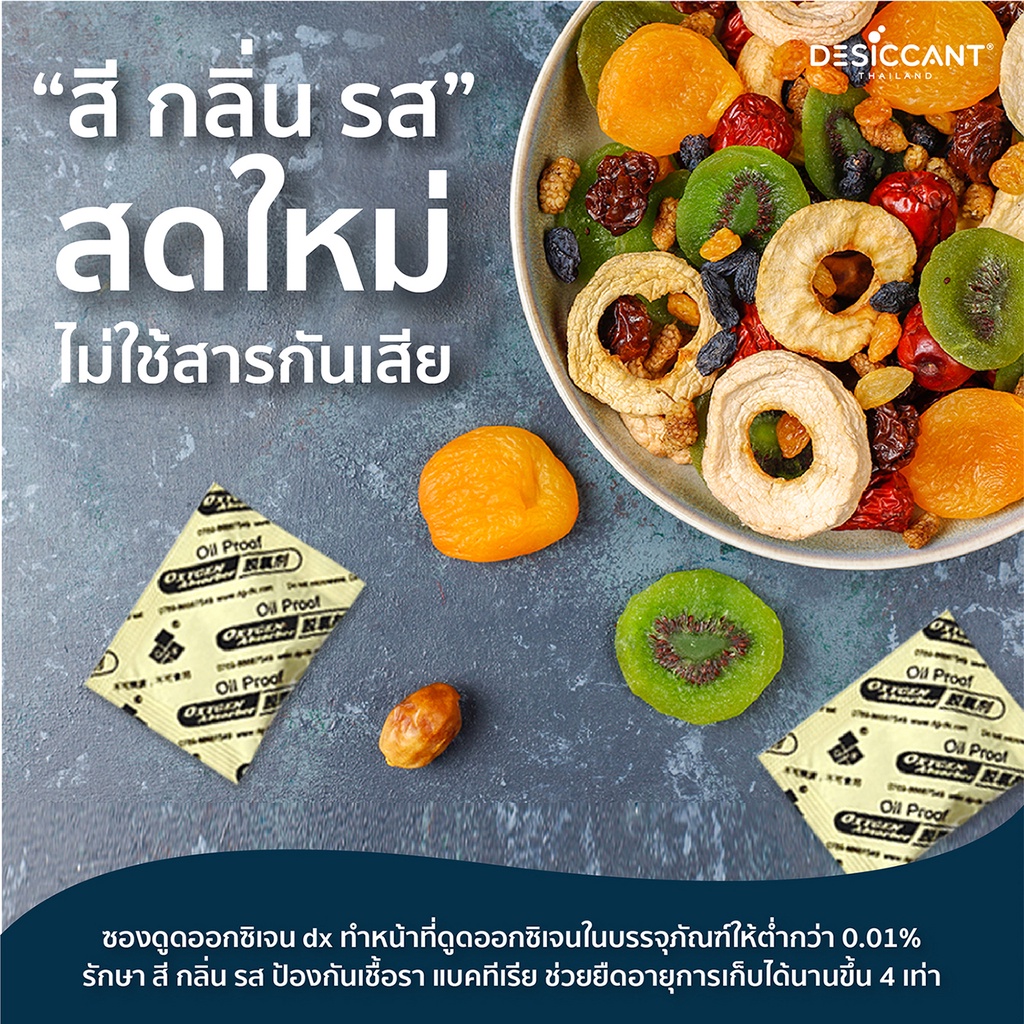 ซองดูดออกซิเจน 200 ซีซี 100 ชิ้น Oxygen Absorber dx200 ยืดอายุอาหาร ป้องกันเชื้อรา-กลิ่นหืน สีเปลี่ยน