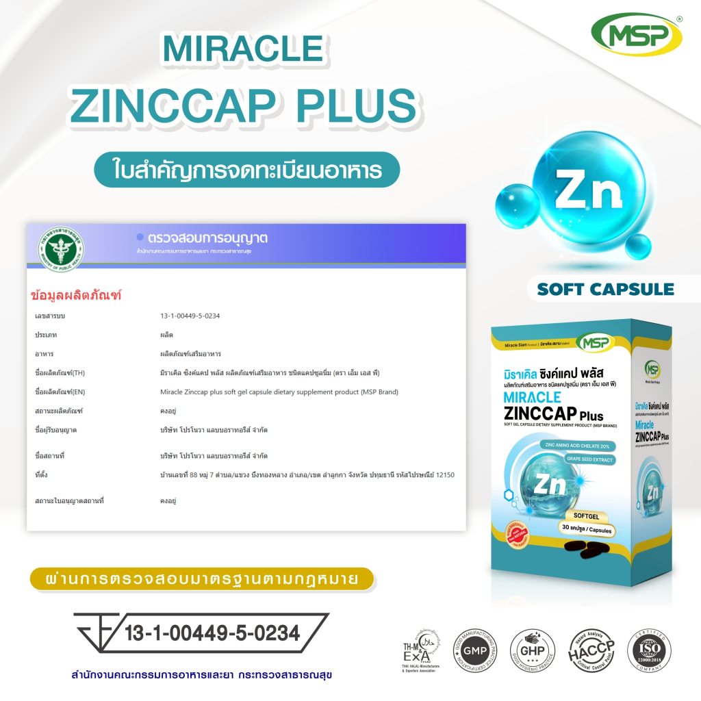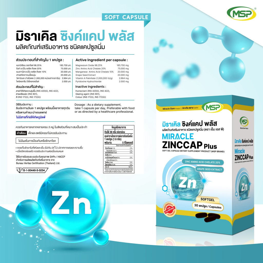 [MSP Official] ซิงค์แคป พลัส l Zinccap plus l Softgel l "การันตีของแท้ ส่งตรงจากบริษัท"