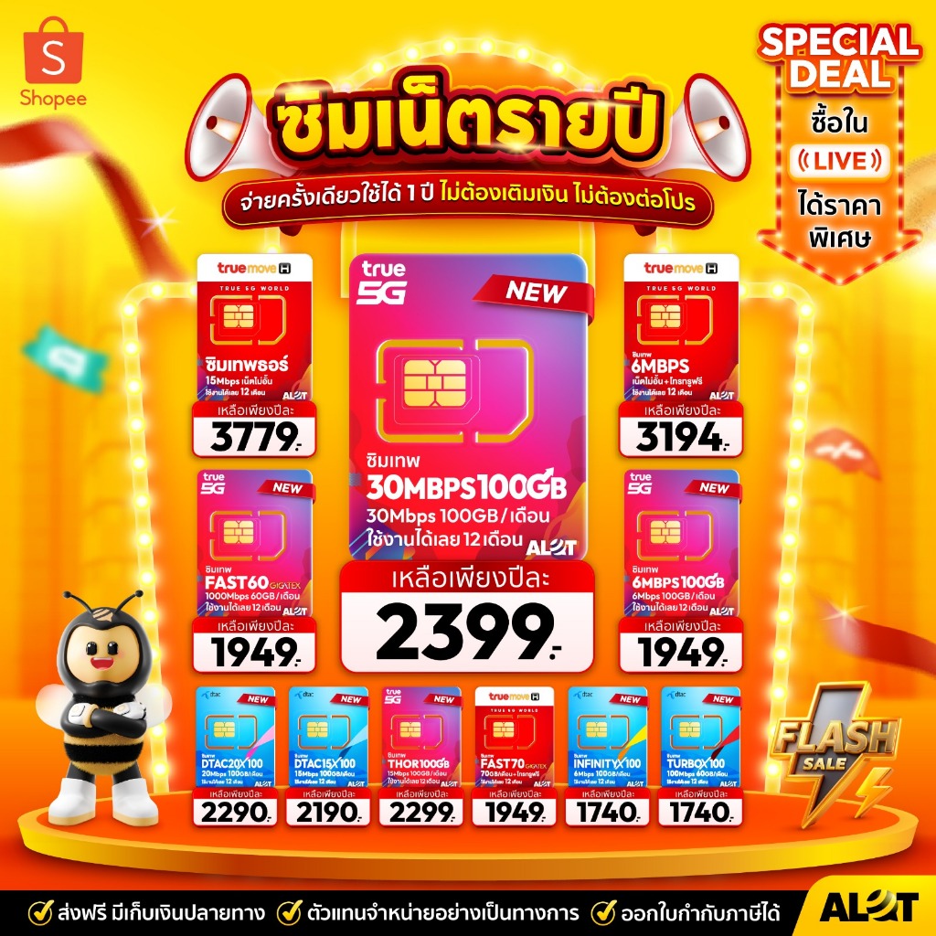 ส่งฟรี! ซิมเทพ เน็ตไม่อั้น ซิมทรู ดีแทค ซิมเน็ตรายปี sim ซิมเทพธอร์ ซิมเทพทรู 5G ออกใบกำกับภาษี AlotTech เก็บเงินปลายทาง