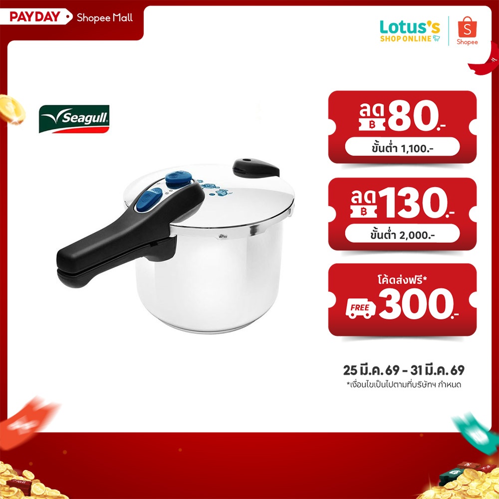 ซีกัล หม้ออัดแรงดัน ความจุ 6 ลิตร / 8 ลิตร สีเงิน SEAGULL PRESSURE COOKER 6 L / 8L SILVER
