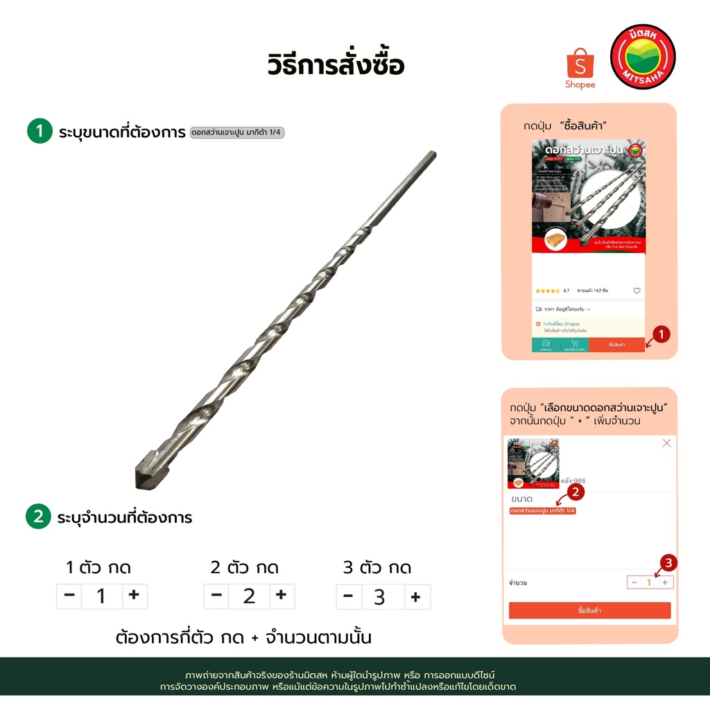 ดอกสว่าน เจาะปูน ขายเป็นดอก ยี่ห้อมากีต้า ขนาด 1/4 นิ้ว MASONRY DRILLS BITS ดอกเจา ะปูน ดอกสว่านเจาะก้านตรง มิตสห