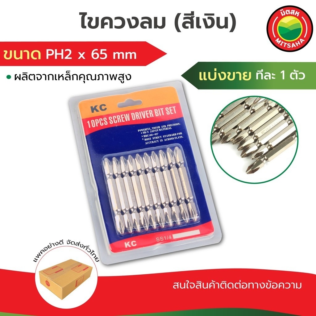 ดอกไขควงลม ไขควงลม มิตสห ขนาด PH2x65mm ดอกขัน สีเงิน ตัวยาว แบ่งขายทีละ1ดอก Screwdriver ดอกไขควง ลม หัวแฉก 2 หัว สีเงิน