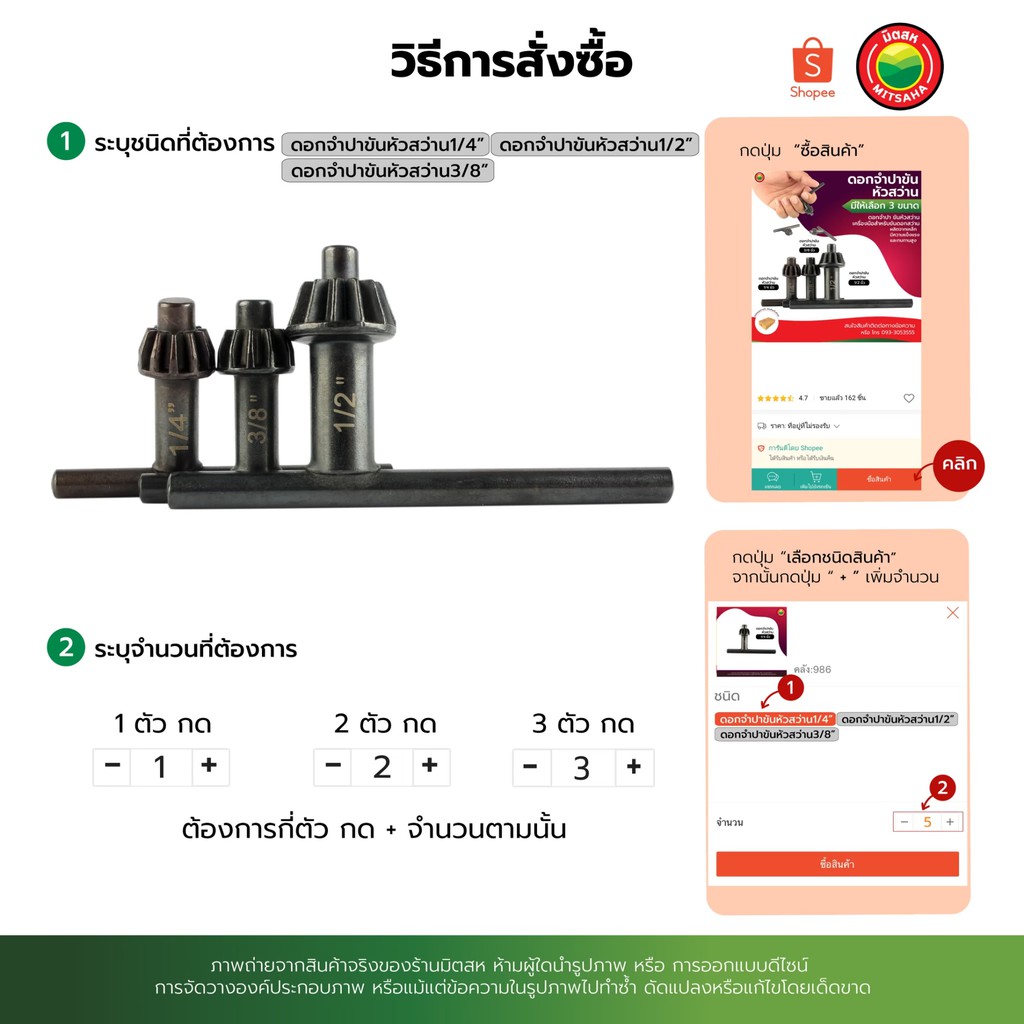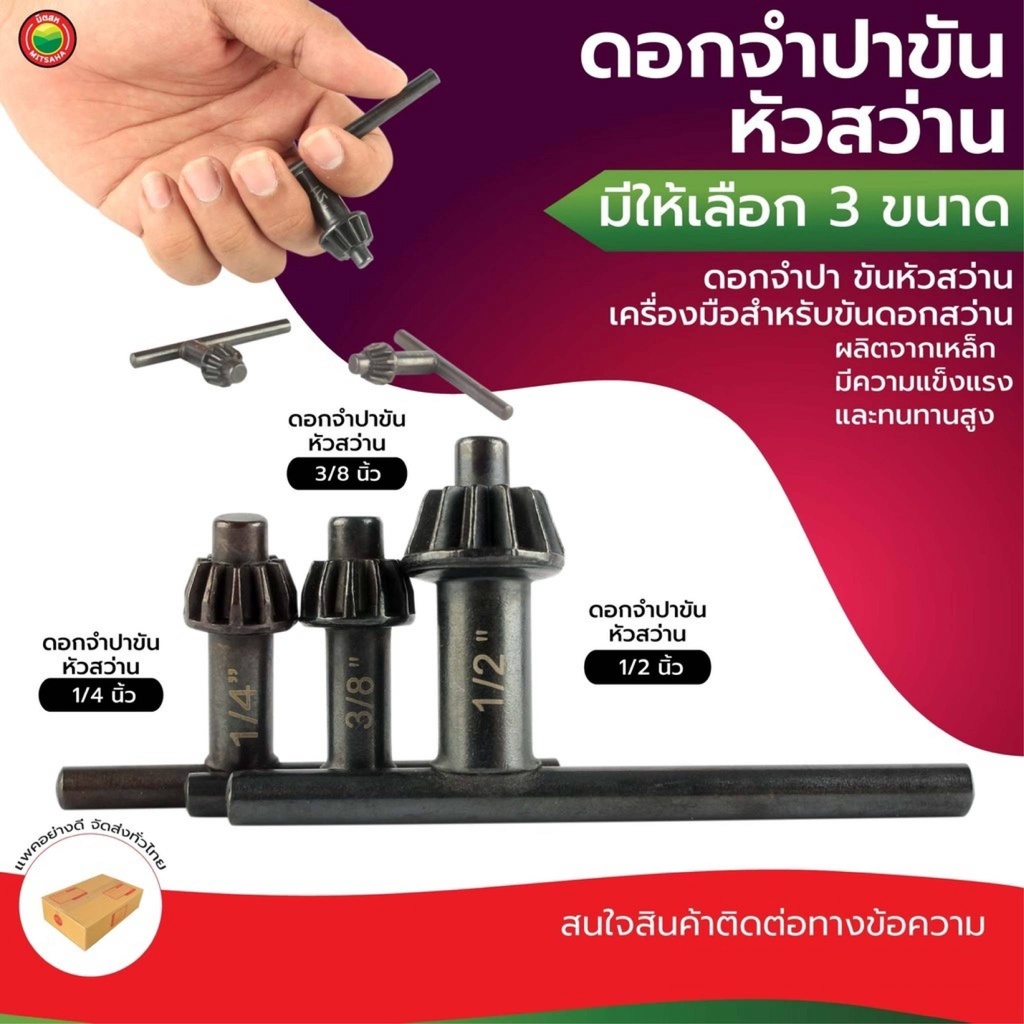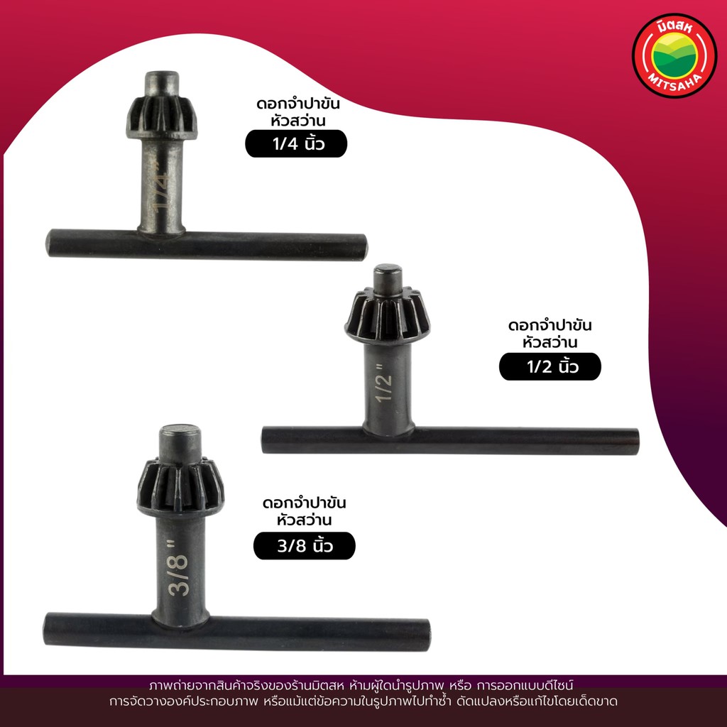 ดอก จำปา ขัน หัว สว่าน ขนาด 1/4" นิ้ว, 3/8" นิ้ว, 1/2" นิ้ว สี ดำ DRILL CHUCK KEYS ดอก กุญแจ ถอด ไข อะไหล่ ไฟฟ้า มิตสห