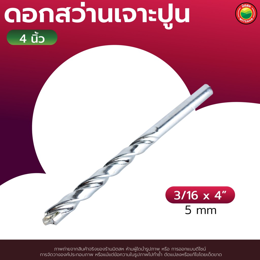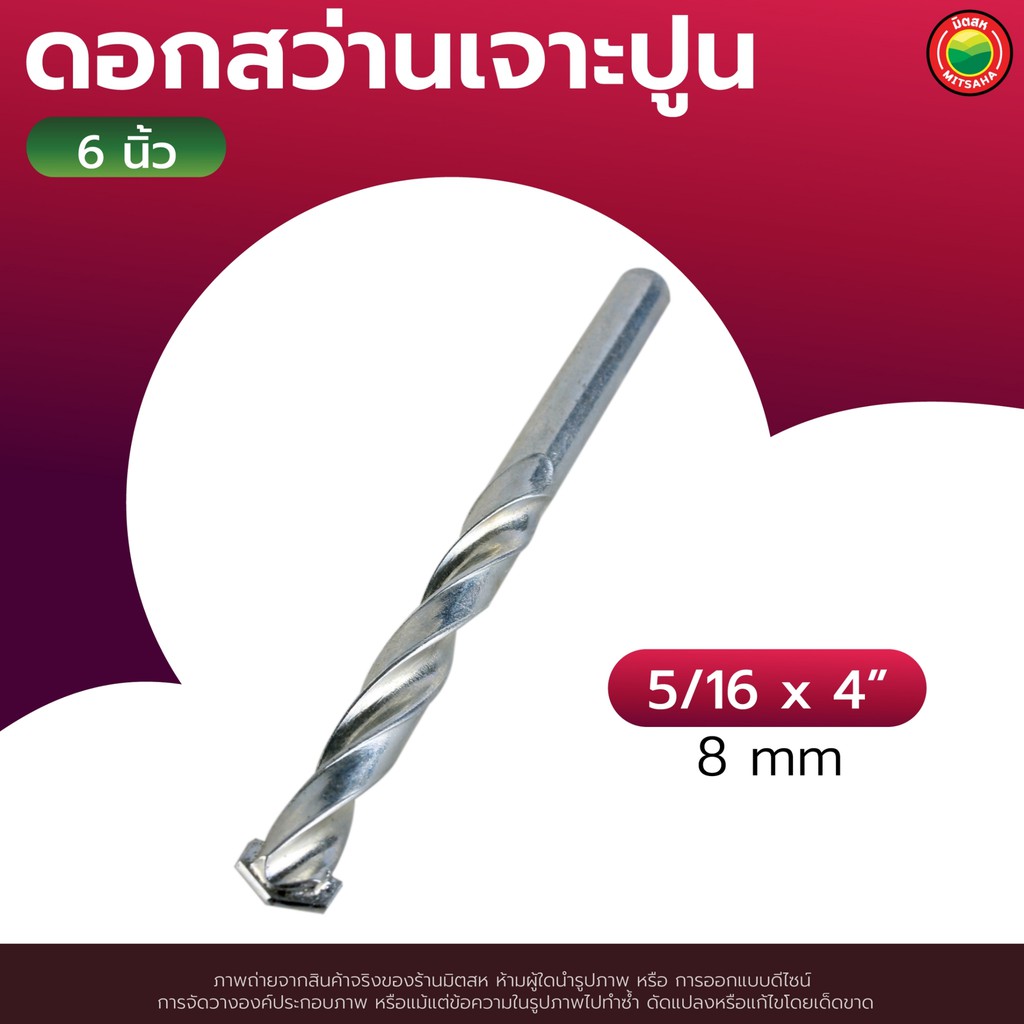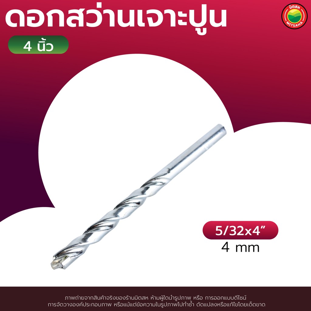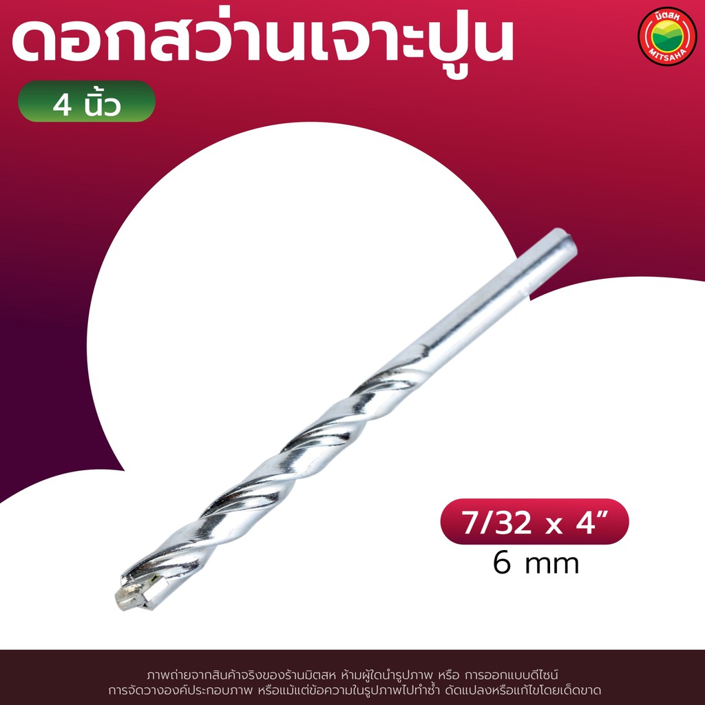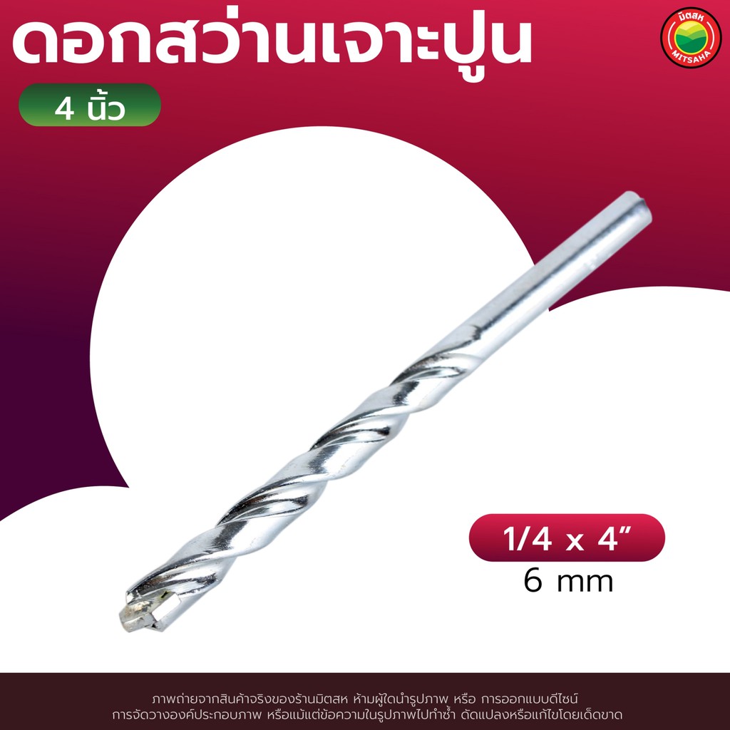 ดอก สว่าน เจาะ ปูน คอนกรีต ยาว 4", 6" สีเงิน MASONRY DRILL BIT ดอกสว่าน เจาะปูน ซีเมนต์ ผนัง อิฐ อเนกประสงค์ มิตสห