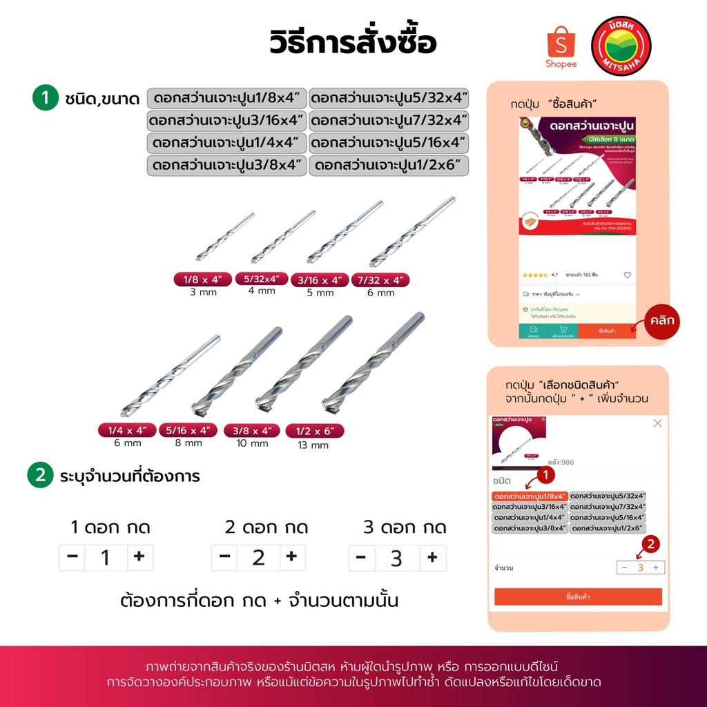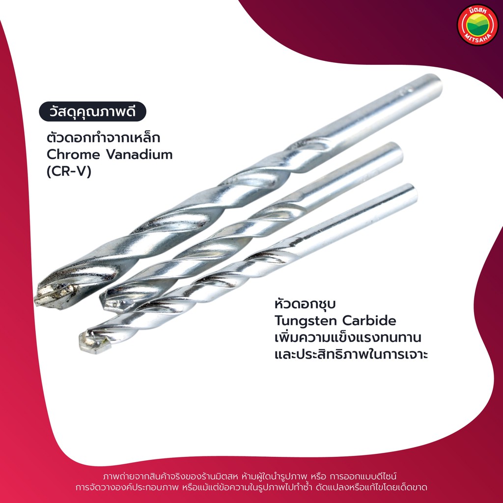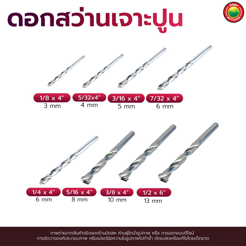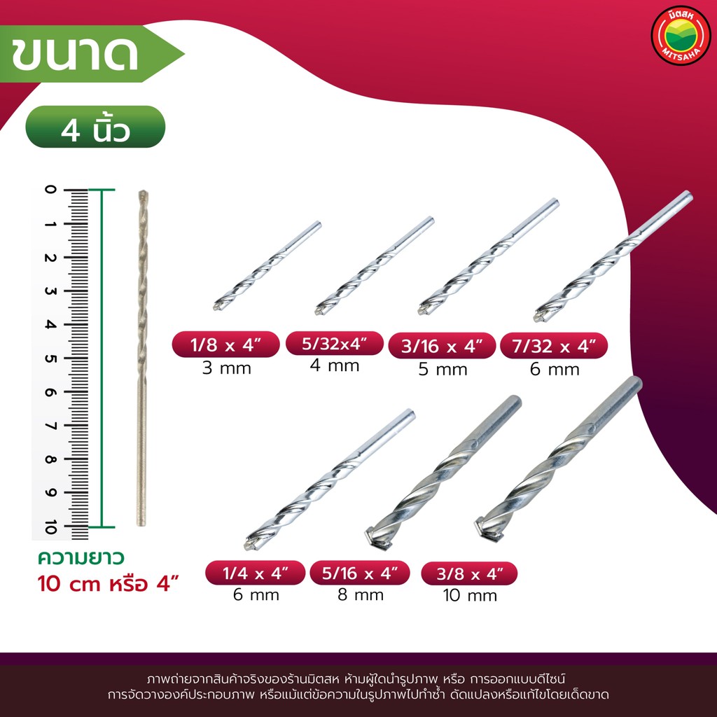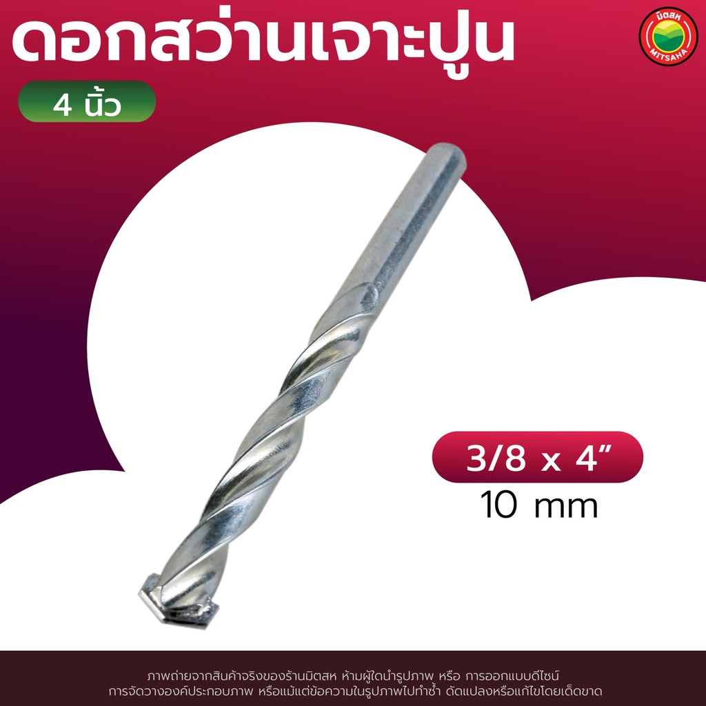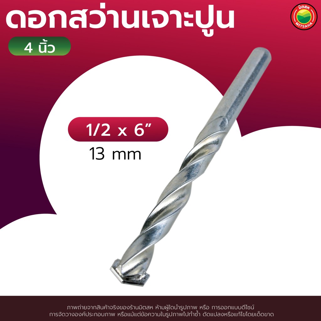 ดอก สว่าน เจาะ ปูน คอนกรีต ยาว 4", 6" สีเงิน MASONRY DRILL BIT ดอกสว่าน เจาะปูน ซีเมนต์ ผนัง อิฐ อเนกประสงค์ มิตสห