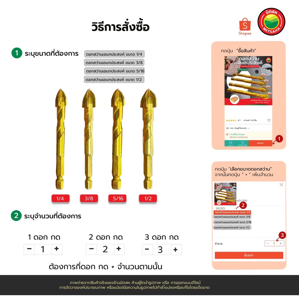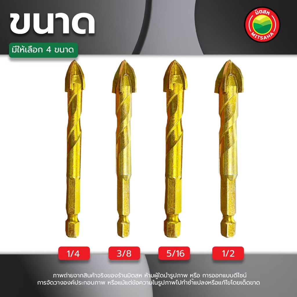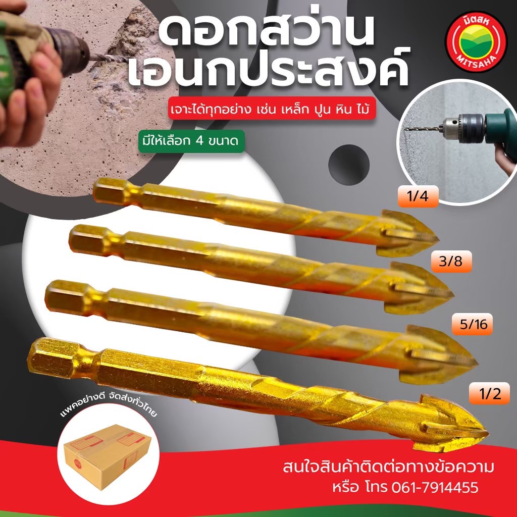 ดอก เจาะ อเนกประสงค์ ขายเป็นดอก ขนาด 1/4, 3/8, 5/16, 1/2 นิ้ว DRILL BIT ดอกสว่าน ดอกเจาะ คอนกรีต กระเบื้อง ปูน ไม้ มิตสห