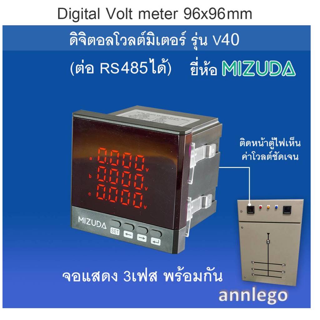 ดิจิตอลโวลต์มิเตอร์ 96x96 มม. (Digital Volt meter) 500V รุ่น V40 class 0.5 ยี่ห้อ MIZUDA