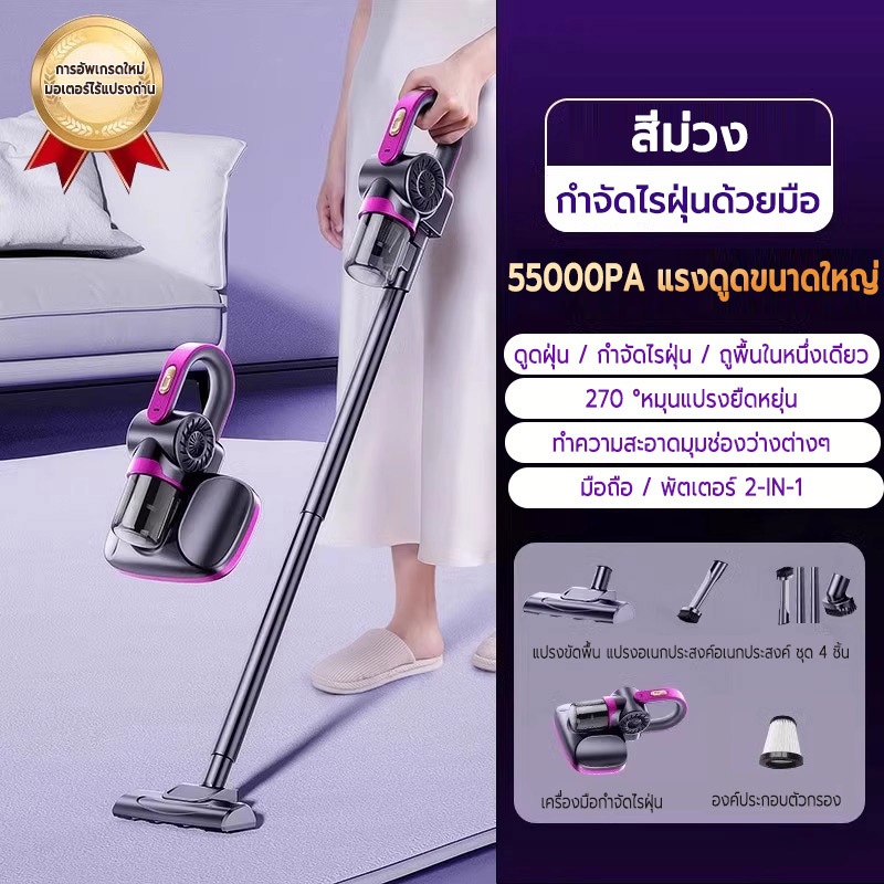 ดูดฝุ่น เครื่องดูดฝุ่นไร้สาย 55000pa แรงดูดสูง 8 ใน 1 เครื่องดูดฝุ่นดูดที่มีประสิทธิภาพในครัวเรือนแบบมีสา แรงดูดทรงพลัง
