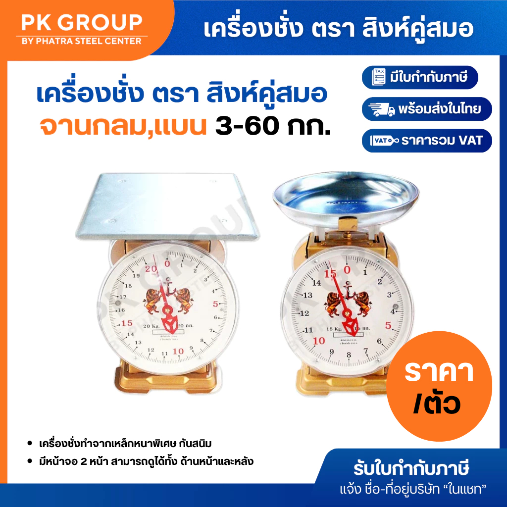 ตราสิงห์คู่สมอ ตาชั่ง เครื่องชั่ง สปริง ขนาด 3, 7, 15, 20, 35, 60 กิโลกรัม ตาชั่งกิโล จานกลม จานแบน