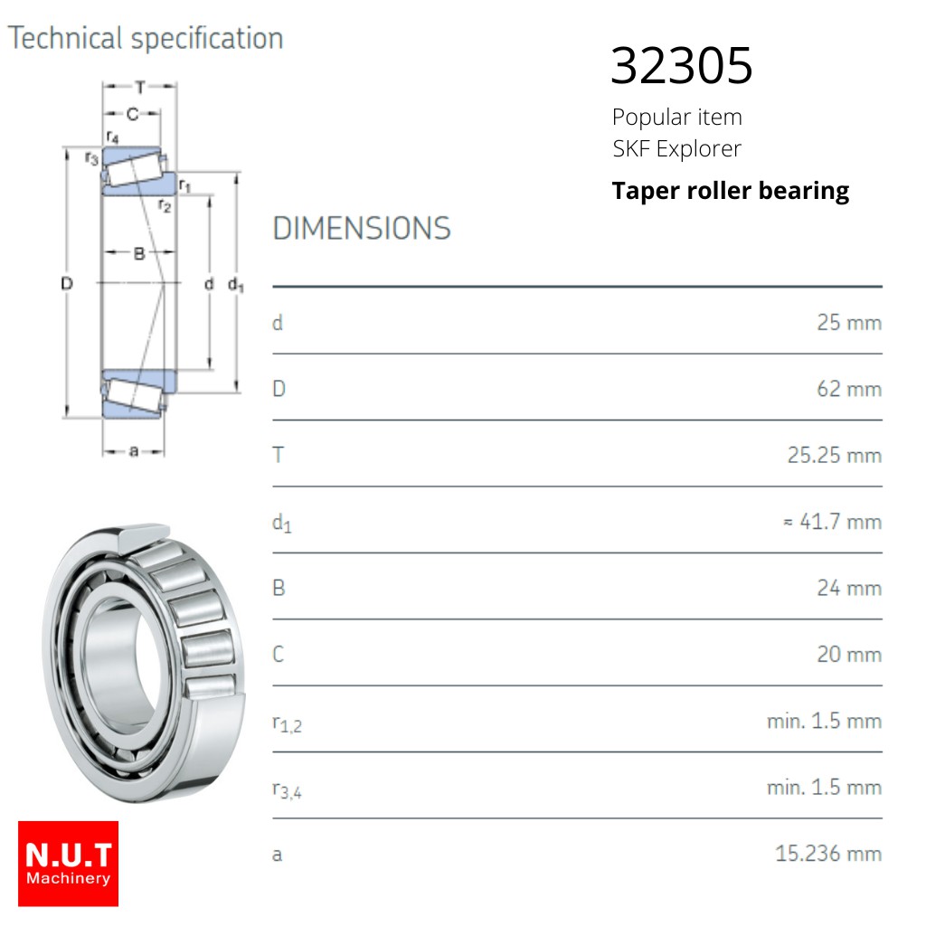 ตลับลูกปืนเตเปอร์ SKF 32305 Taper roller bearing