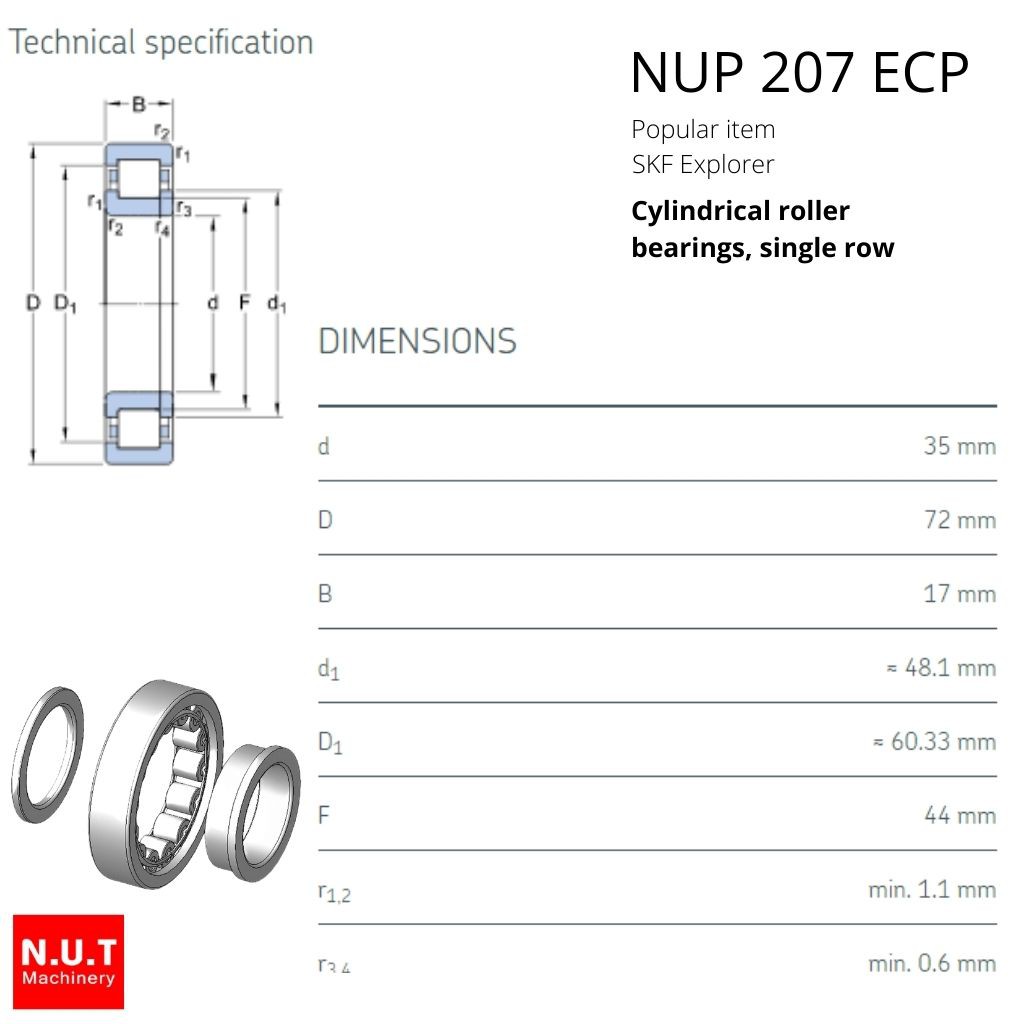 ตลับลูกปืนเม็ดทรงกระบอก รังโพลี่ยาไมด์ SKF NUP 207 ECP