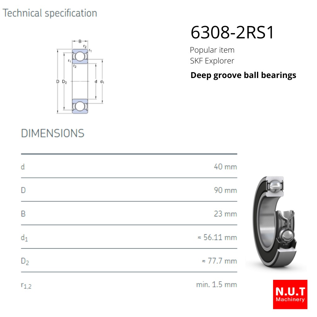 ตลับลูกปืน SKF 6308-2RS1 ฝายาง