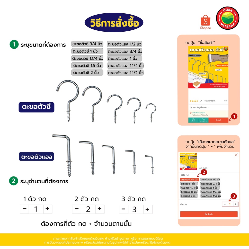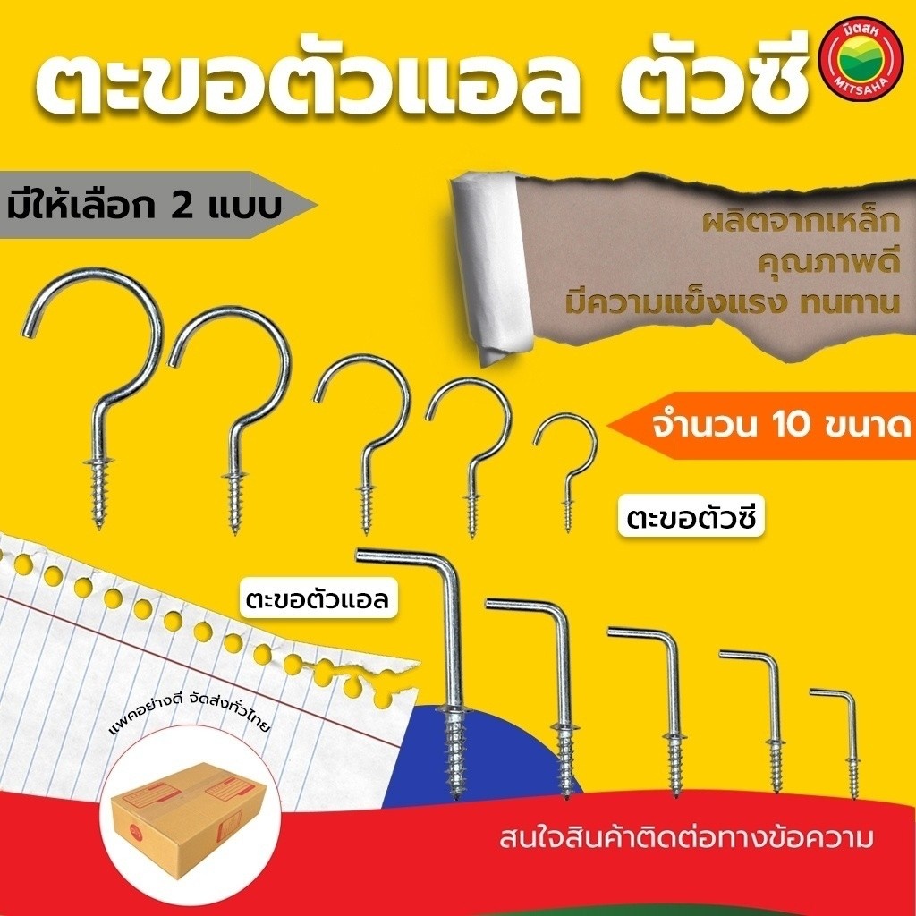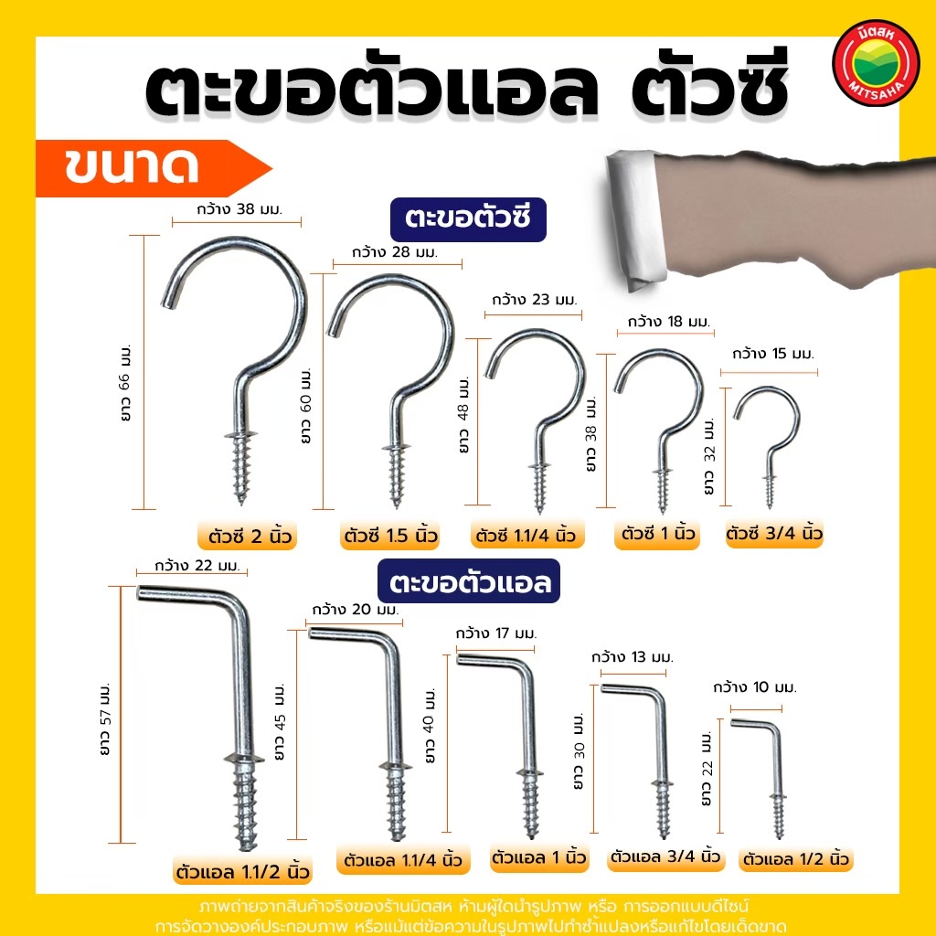 ตะขอ ตัวซี ตัวแอล เหล็กชุบซิงค์ SELF TAPPING SCREW C HOOK&L HOOK ขอตัวงอ ห่วงเจาะ เกลียวปล่อย ตะขอเกลียว แขวนรูป. มิตสห
