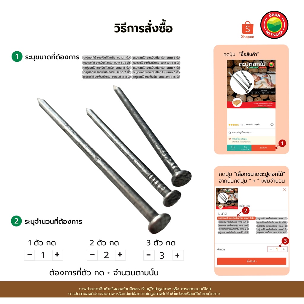 ตะปู ตอกไม้ ตะปูเหล็ก ขายเป็นกิโล 1,1.5,2,2.5x12,3,4,5 นิ้ว WOOD NAILS ตะปูหัวแบน งานไม้ ตะปูยึดไม้ แรงดันสูง มิตสห