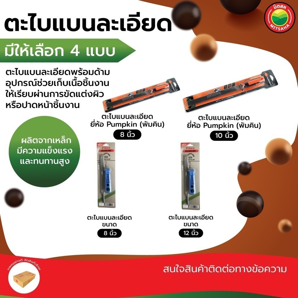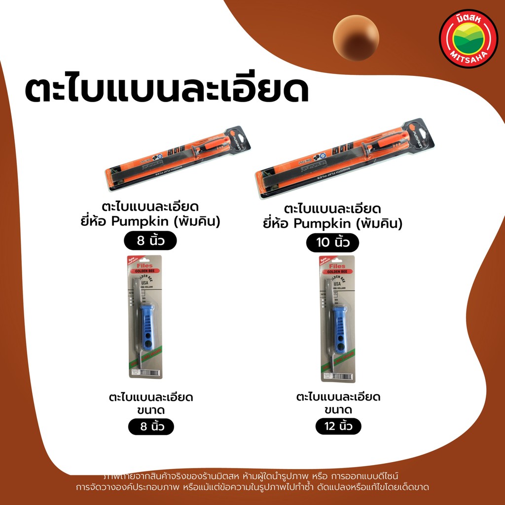 ตะไบ แบน ละเอียด Pumpkin Golden Bee ขนาด 8"นิ้ว,10"นิ้ว,12"นิ้ว FLAT FILE เหล็ก ขัด ปาด ถู ลบ คม ด้าม ยาง พลาสติก มิตสห