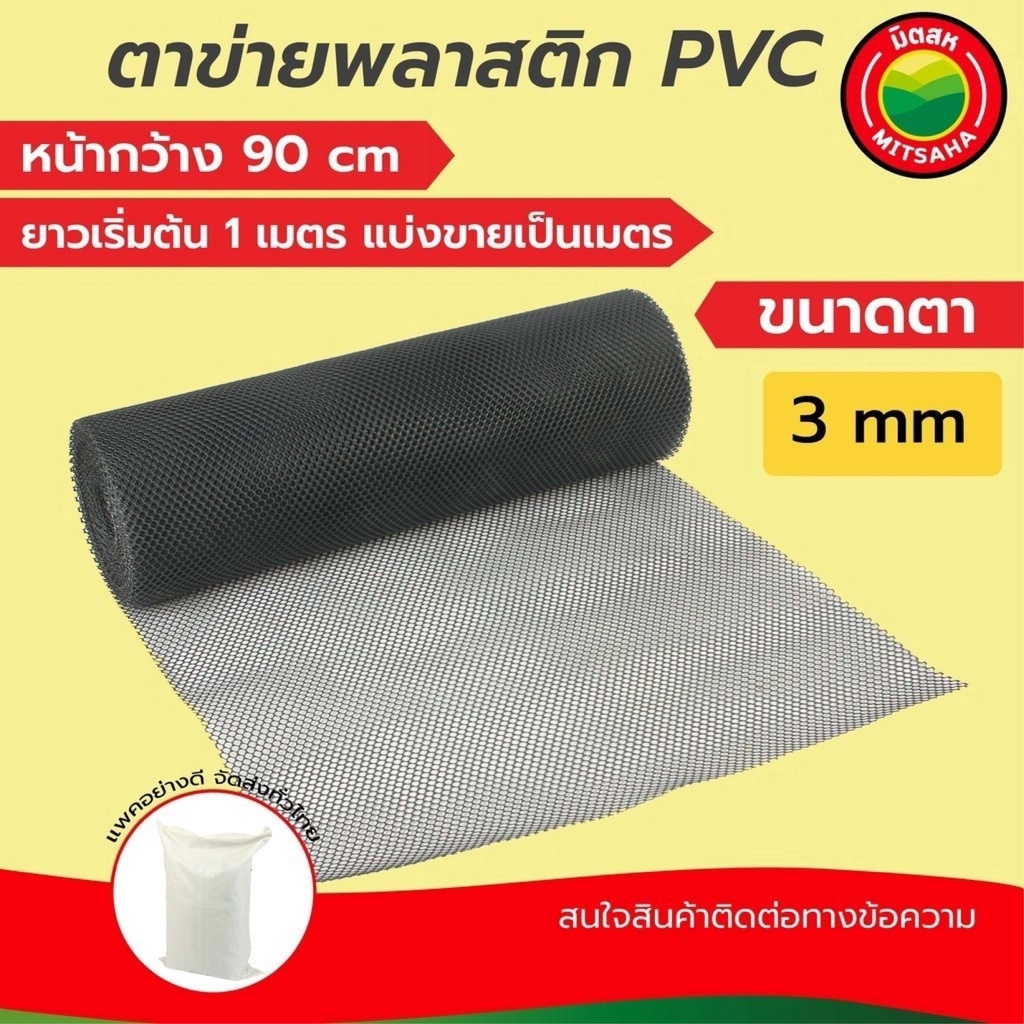 ตาข่าย พลาสติก พีวีซี PVC มิตสห สีดำ ขนาดตา(รู) 3 มิล หน้ากว้าง90ซม. แบ่งขายเป็นเมตร ยาวเริ่มต้น1เมตรPVCPlasticFlatNet