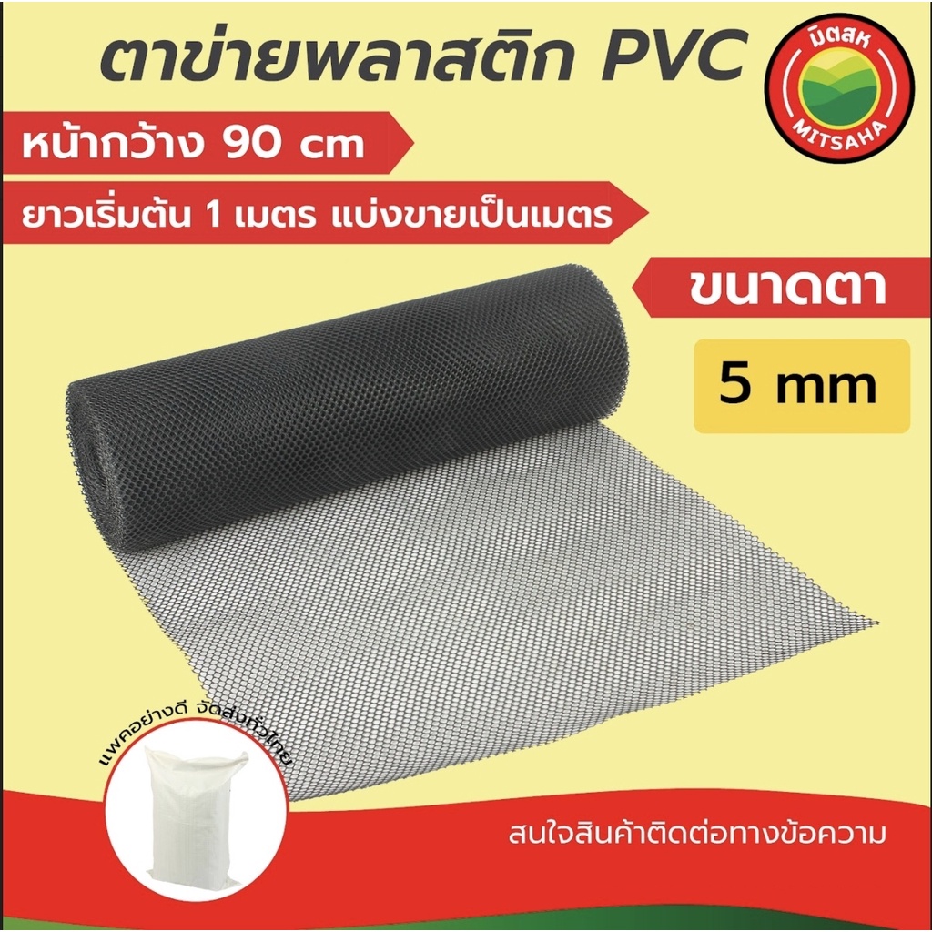 ตาข่าย พลาสติก พีวีซี PVC มิตสห สีดำ ขนาดตา(รู) 5 มิล หน้ากว้าง90ซม. แบ่งขายเป็นเมตร ยาวเริ่มต้น1เมตรPVCPlasticFlatNet