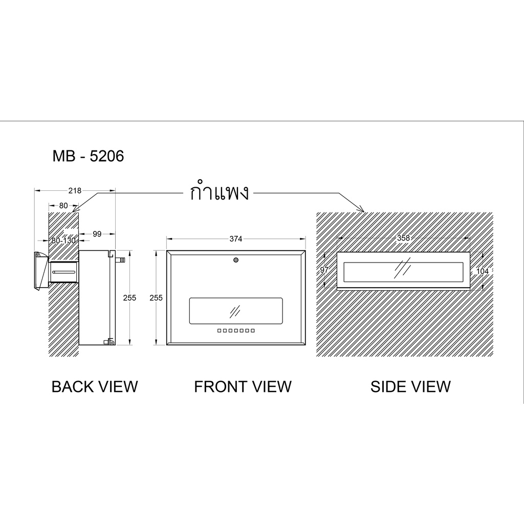 ตู้จดหมายแบบฝังกำแพง Box&Co รุ่น MB5206