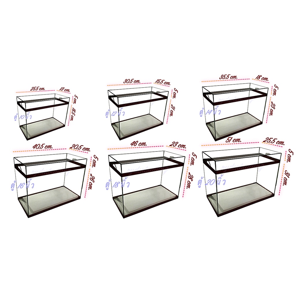 ตู้เลี้ยงปลาพร้อมฝา กระจกหนา 3 มิล ขอบอคิลิค ขนาด 16 นิ้ว 18 นิ้ว 20 นิ้ว