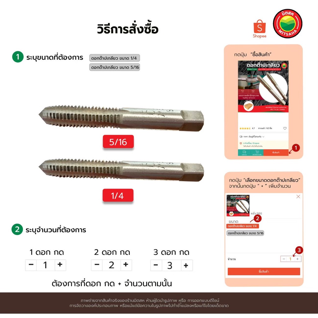 ต๊าป เกลียว ดอกต๊าปเกลียว ขายเป็นตัว 5/16, 1/4 นิ้ว TAPPING ต๊าป ต๊าปเกลียวตัวผู้ ดอกต๊าป ดอกทำเกลียว ดอกต๊าปเกลียวใช้กั