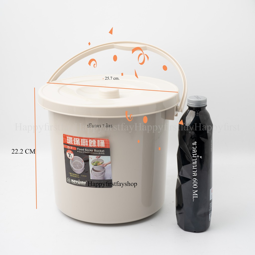 ถังกรองเศษอาหาร ตะแกรง พร้อมฝาปิด ขนาดกระทัดรัด สีครีม สว ยงาม ถังD7